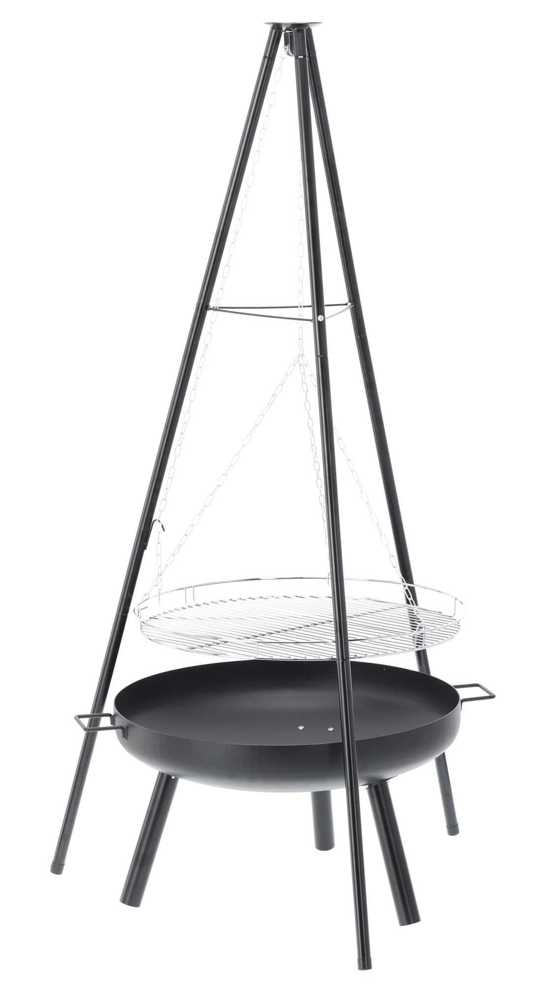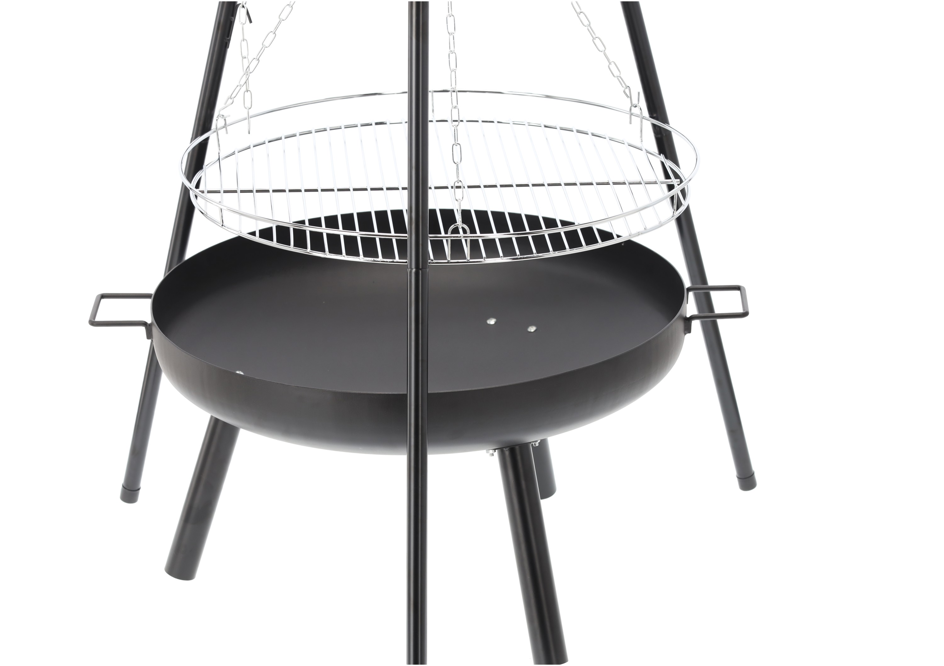 Створений з думкою про зручність і довговічність — з товстою чашею для вогнища, регулюванням висоти та хромованою решіткою, яка вмістить усі ваші улюблені делікатеси!