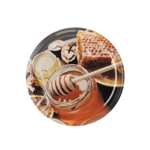 Кришка з кулькою для меду розміром 82 мм ідеально підійде для закриття банок з медом або іншими консервами. Крім того, малюнок на кришці спонукає кожного споживача до покупки. Розмір: діаметр 82 мм