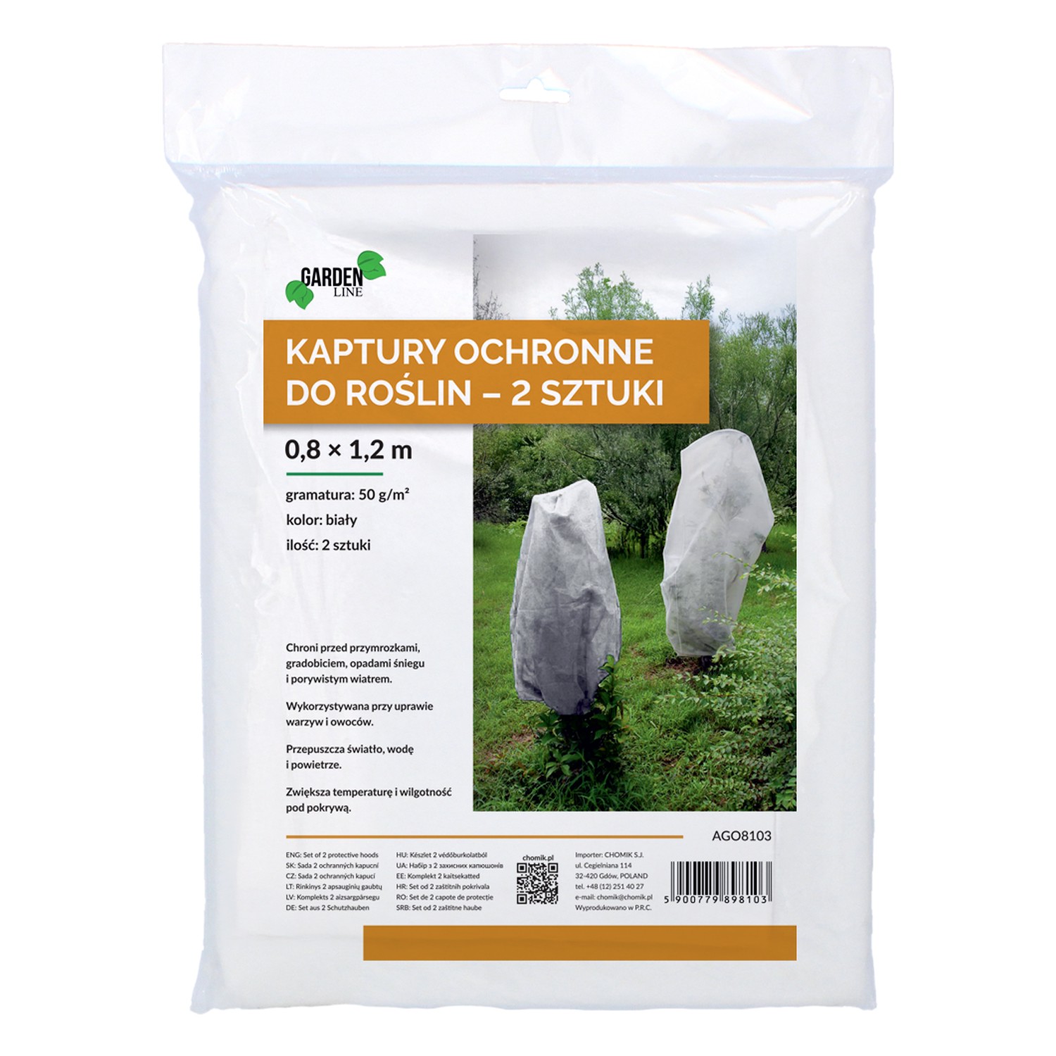 Захисний капюшон виготовлений з агротканини білого кольору вагою 50 грам.Він служить для захисту рослин, які є більш чутливими до низьких температур. Захищає від низьких температур, втрати вологи, негативного впливу вітру.Капюшон ідеально підходить для безсніжних зим, захищає від морозу, снігу, граду та висушування вітром, коли немає захисного снігового покриву.Капюшон є багаторазовим. Запобігає сіданню птахів на тендітні замерзлі гілки, тим самим захищаючи їх від ламання.Запобігає прилипанню мокрого снігу до рослин і додатковому їх навантаженню.Розміри: 0,8 x 1,2 мКолір: білийУпаковка містить 2 шт.