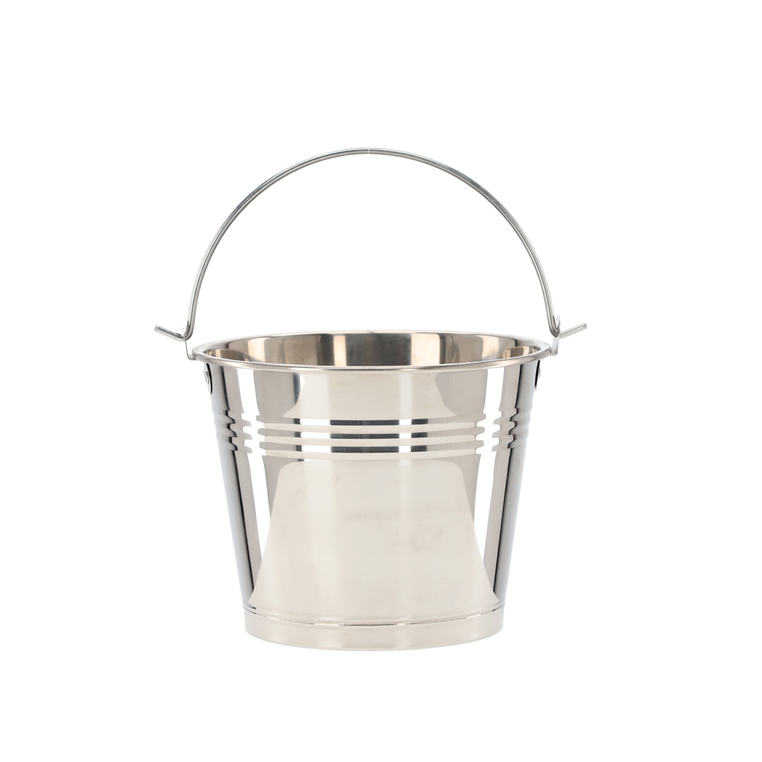 Нержавіюче відро місткістю 5 літрів, ідеально підходить як для домашнього, так і для садового використання, особливо як елемент набору для поливу. Легке в очищенні та зручне у використанні.