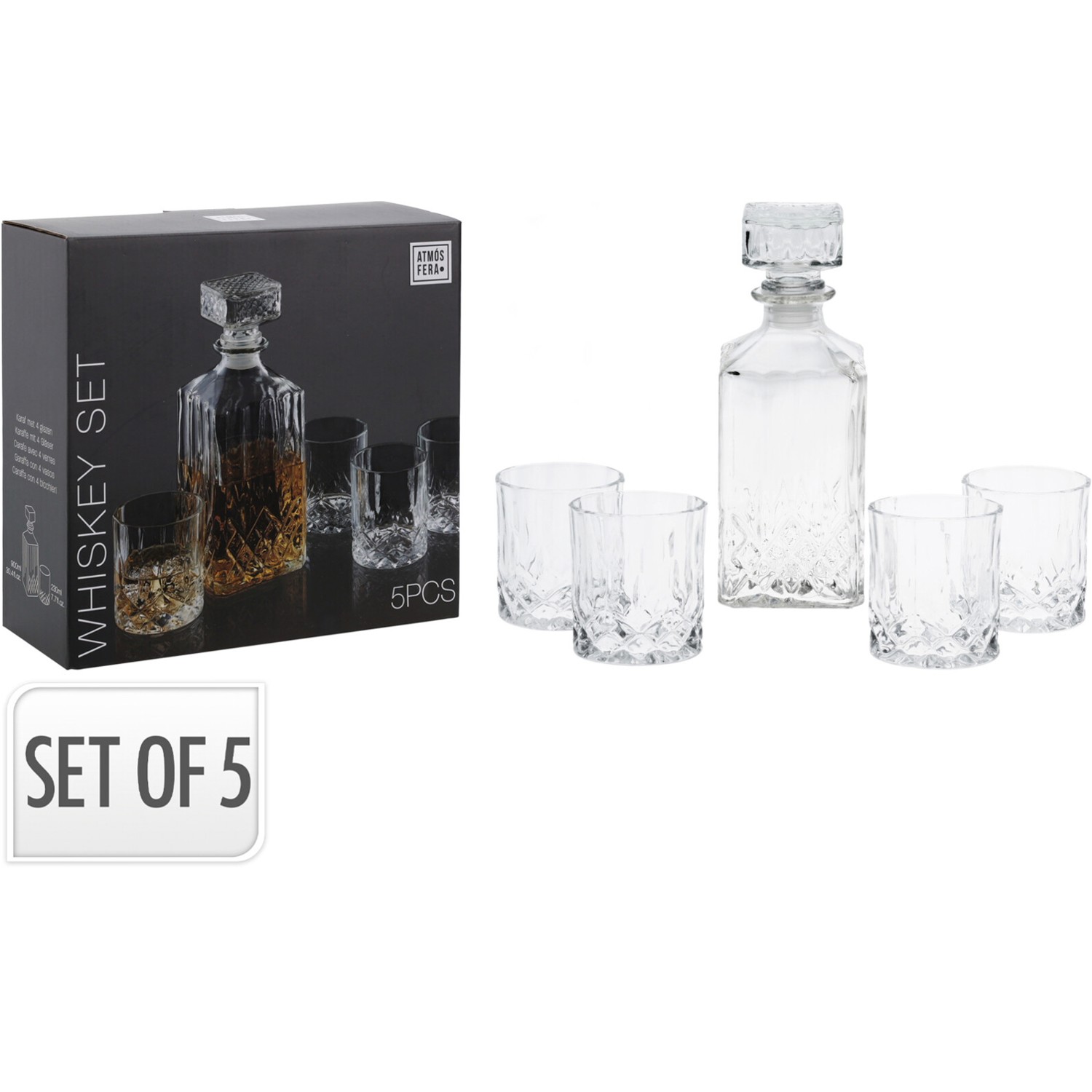 Набір, що складається з карафи та 4 склянок, ідеально підходить для подачі води, соків та інших напоїв. Елегантний дизайн робить набір ідеальним як для щоденного використання, так і для особливих випадків.