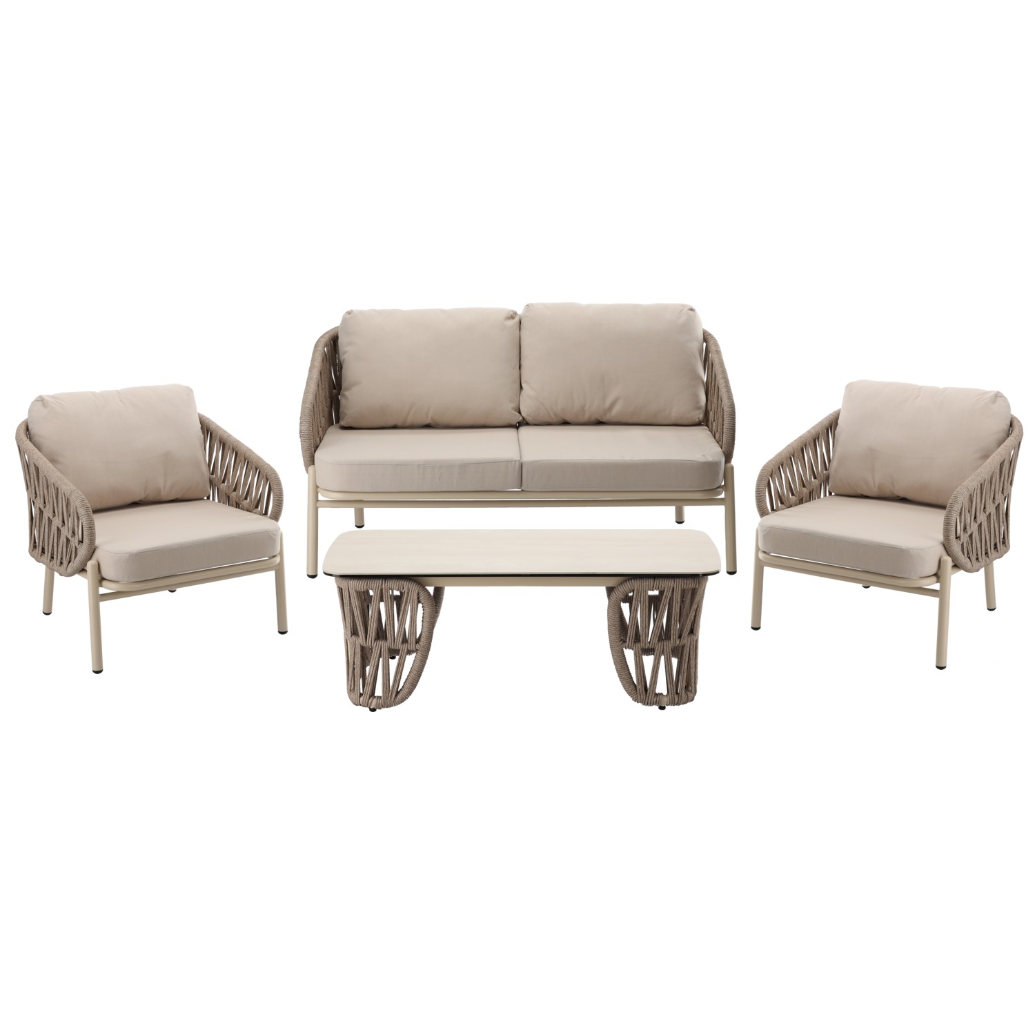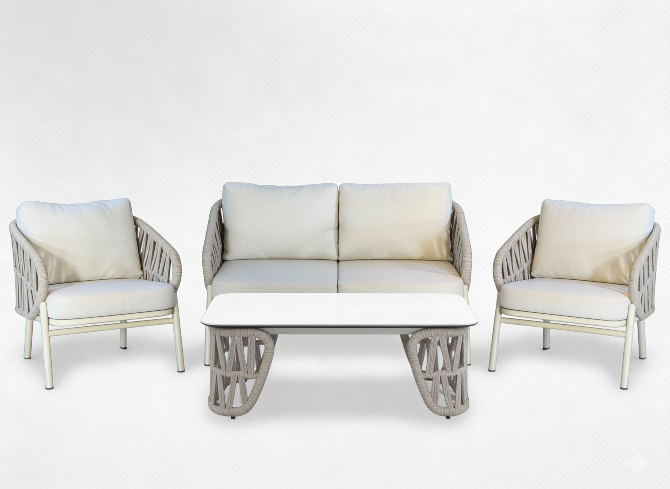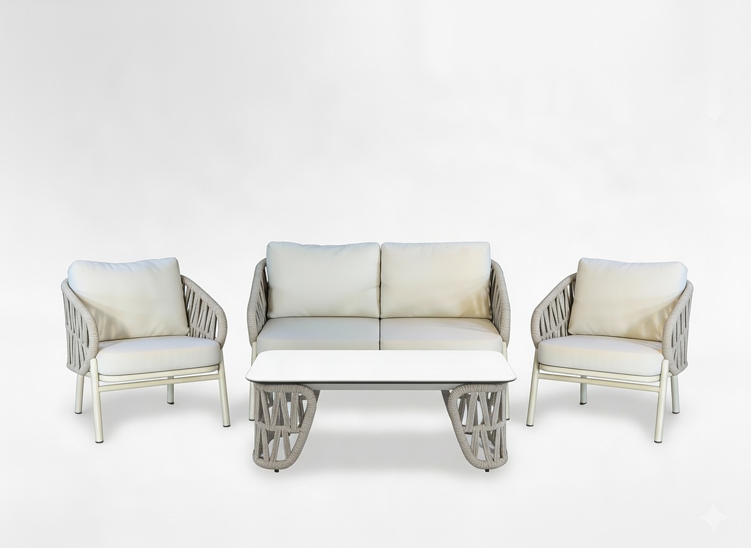 ✔️ Сучасний дизайн в елегантній бежевій кольоровій гамі✔️ Міцна алюмінієва конструкція, стійка до атмосферних впливів✔️ Товсті, зручні подушки 10 см✔️ Міцні з'єднання з нержавіючої сталі✔️ Великий, практичний журнальний столик✔️ Ідеально підходить для приватних і престижних зон відпочинку