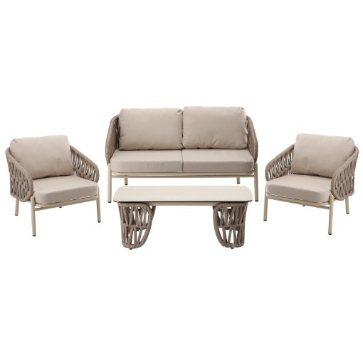 ✔️ Сучасний дизайн в елегантній бежевій кольоровій гамі✔️ Міцна алюмінієва конструкція, стійка до атмосферних умов✔️ Товсті, зручні подушки 10 см✔️ Міцні з'єднання з нержавіючої сталі✔️ Великий, практичний журнальний столик✔️ Ідеально підходить для приватних та престижних зон відпочинку