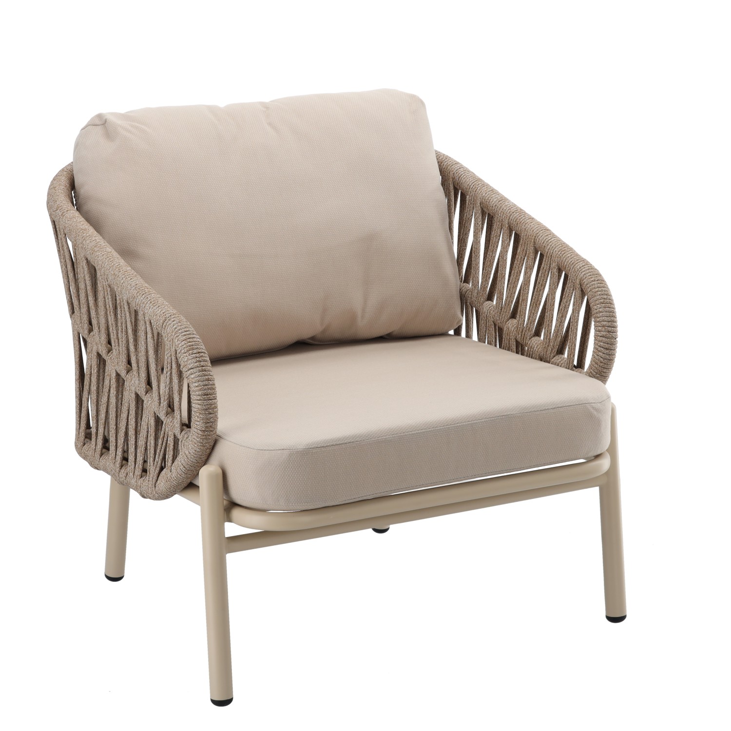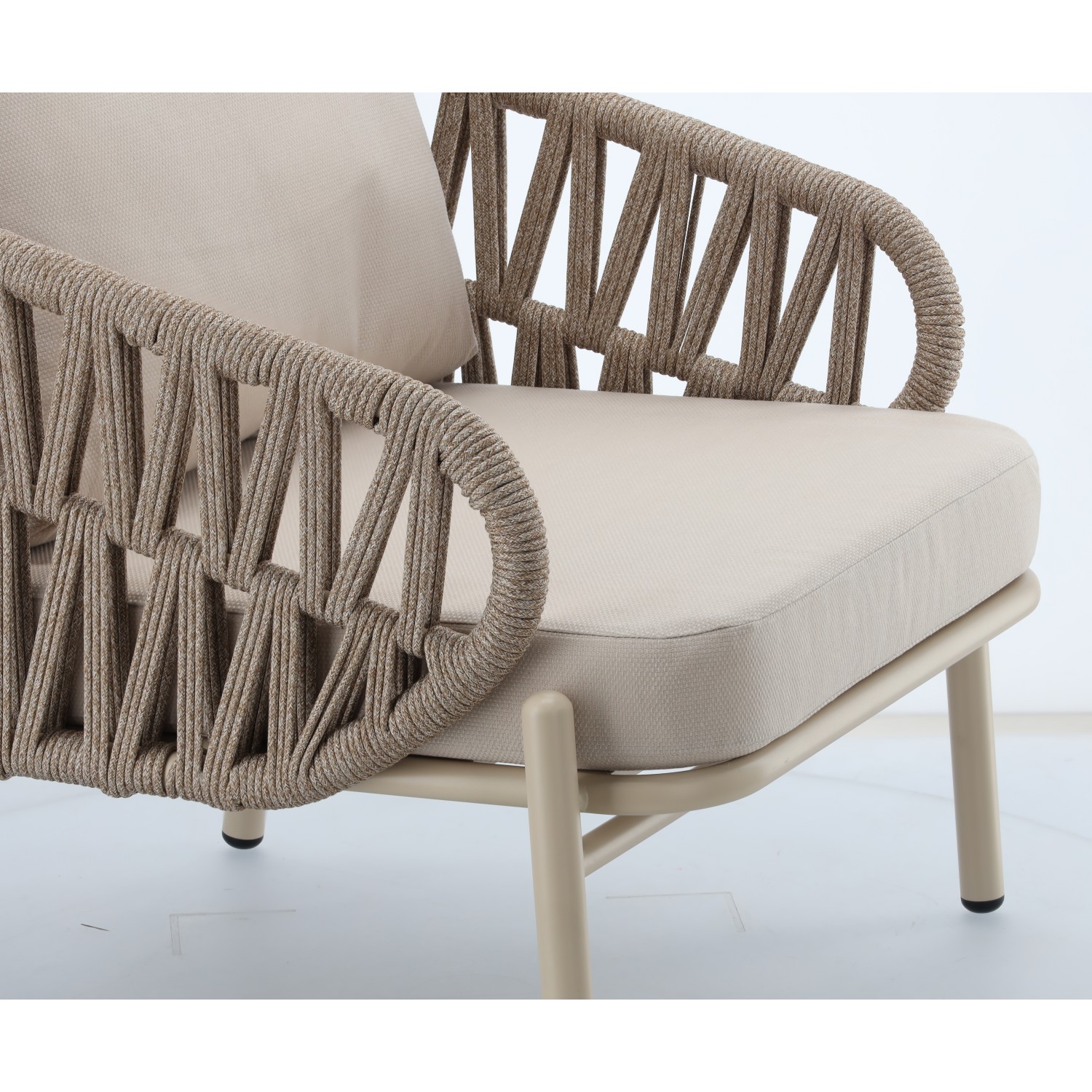 Тонка, світла бежева кольорова гама в поєднанні з м'якими, товстими подушками (10 см) забезпечує високий комфорт сидіння 🛋️✨ і надає всьому легкості та позачасового характеру. Комплект ідеально вписується як в сучасні, так і в класичні інтер'єри зовнішніх просторів 🌿✨