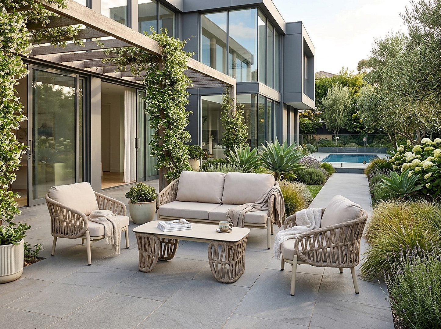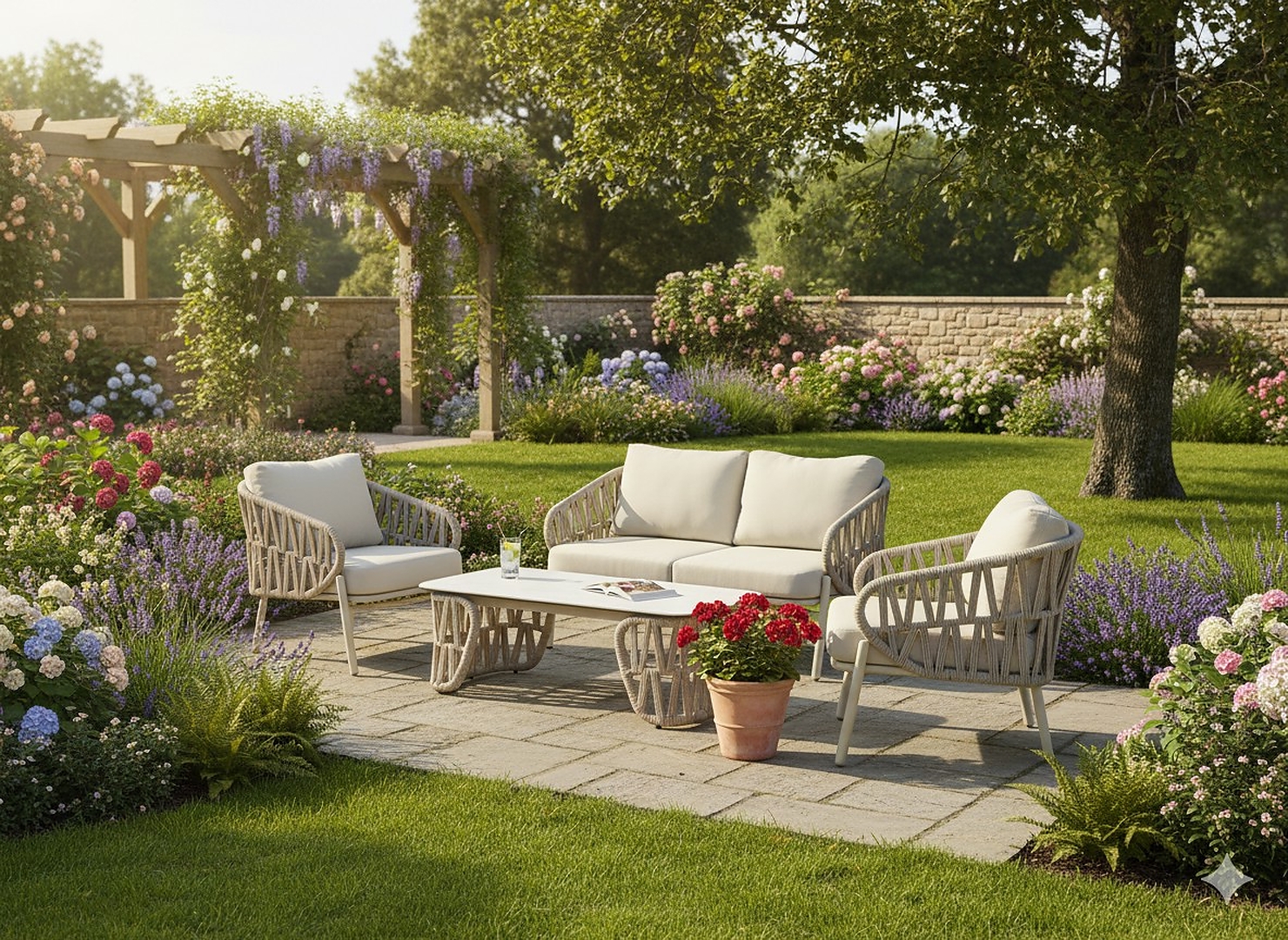 ✨ Сучасний комплект садових меблів з алюмінію — елегантність, комфорт і довговічність у природному стилі 🌿
