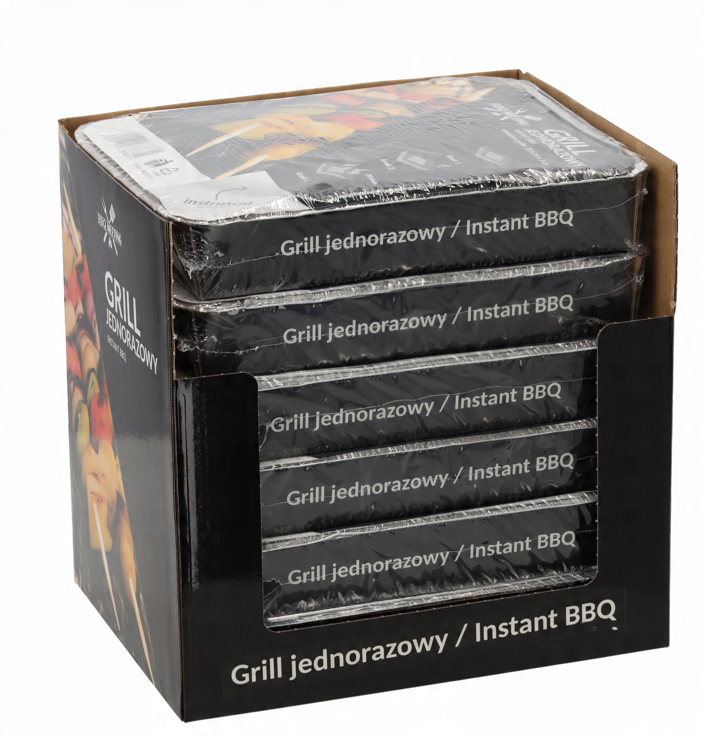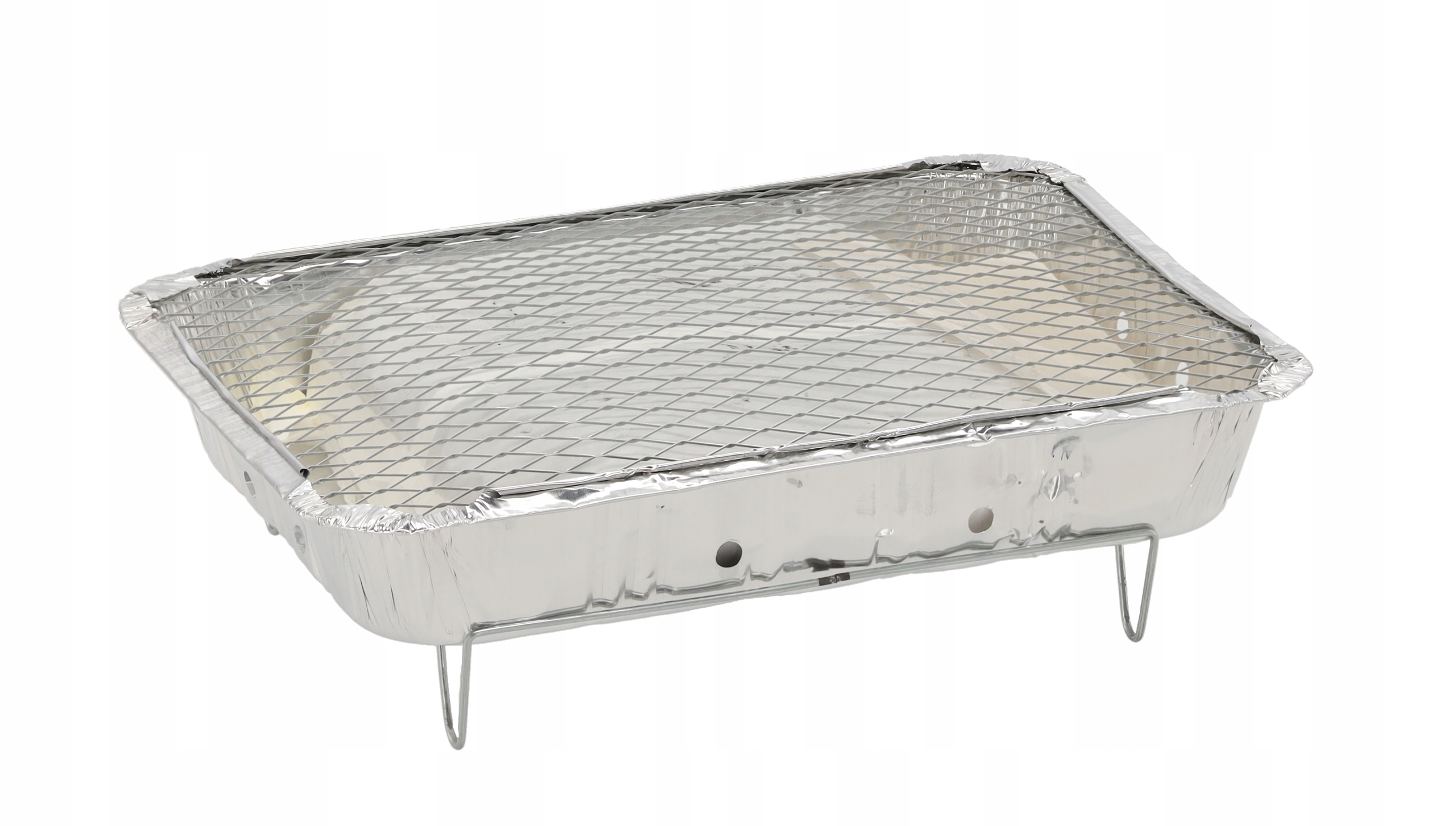 Одноразовий гриль ідеально підходить для швидкого приготування їжі на відкритому повітрі. Містить все необхідне для початку приготування їжі – піддон, заповнений брикетом, розпалювач, решітку та ніжки.