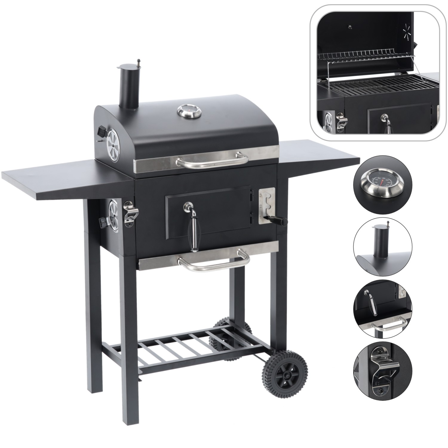 Завдяки чавунній решітці, кришці з термометром та мобільним коліщаткам, приготування на грилі стає простим, зручним та надзвичайно ефектним. Він чудово підійде як у саду, так і на дачі або під час сімейного пікніка. 🍔