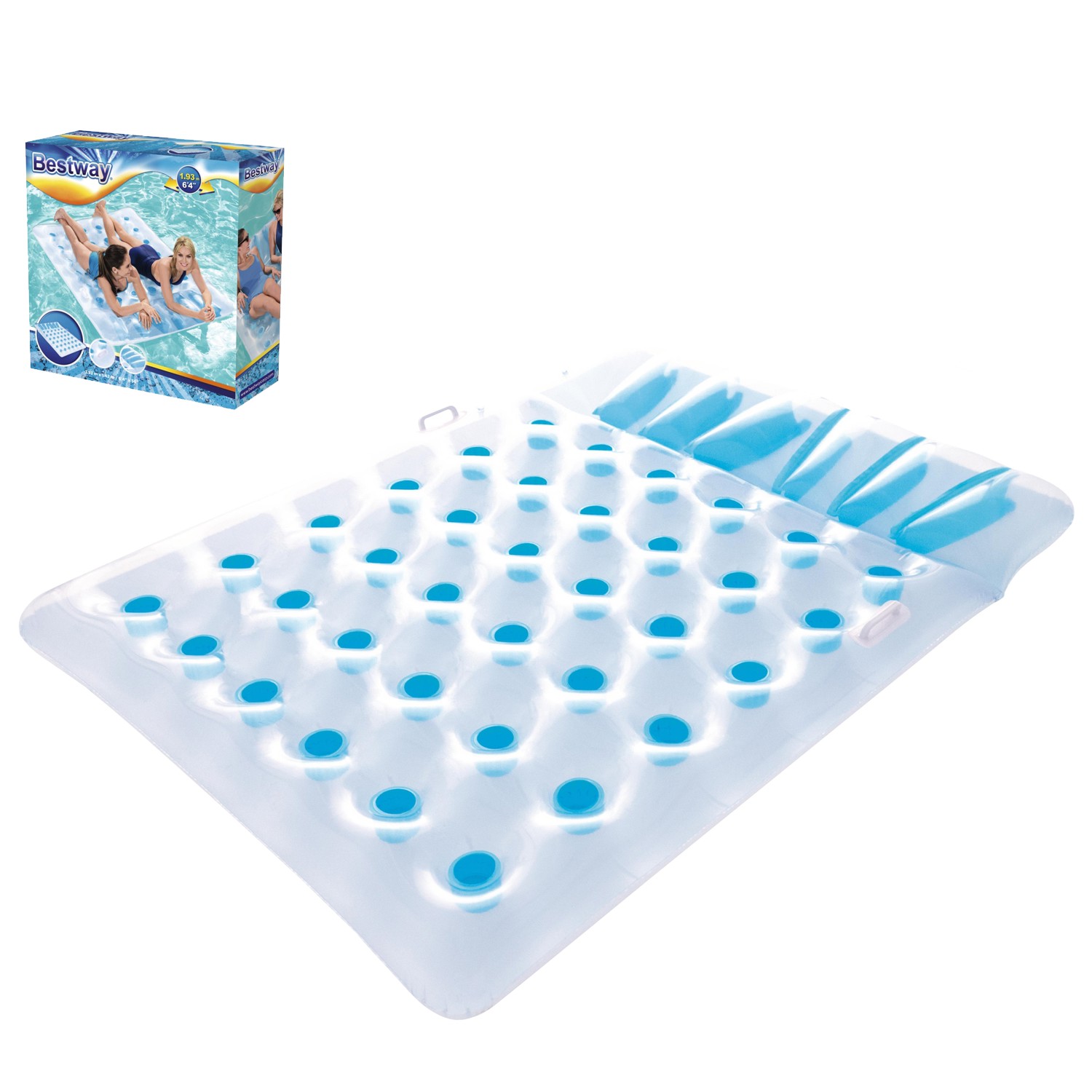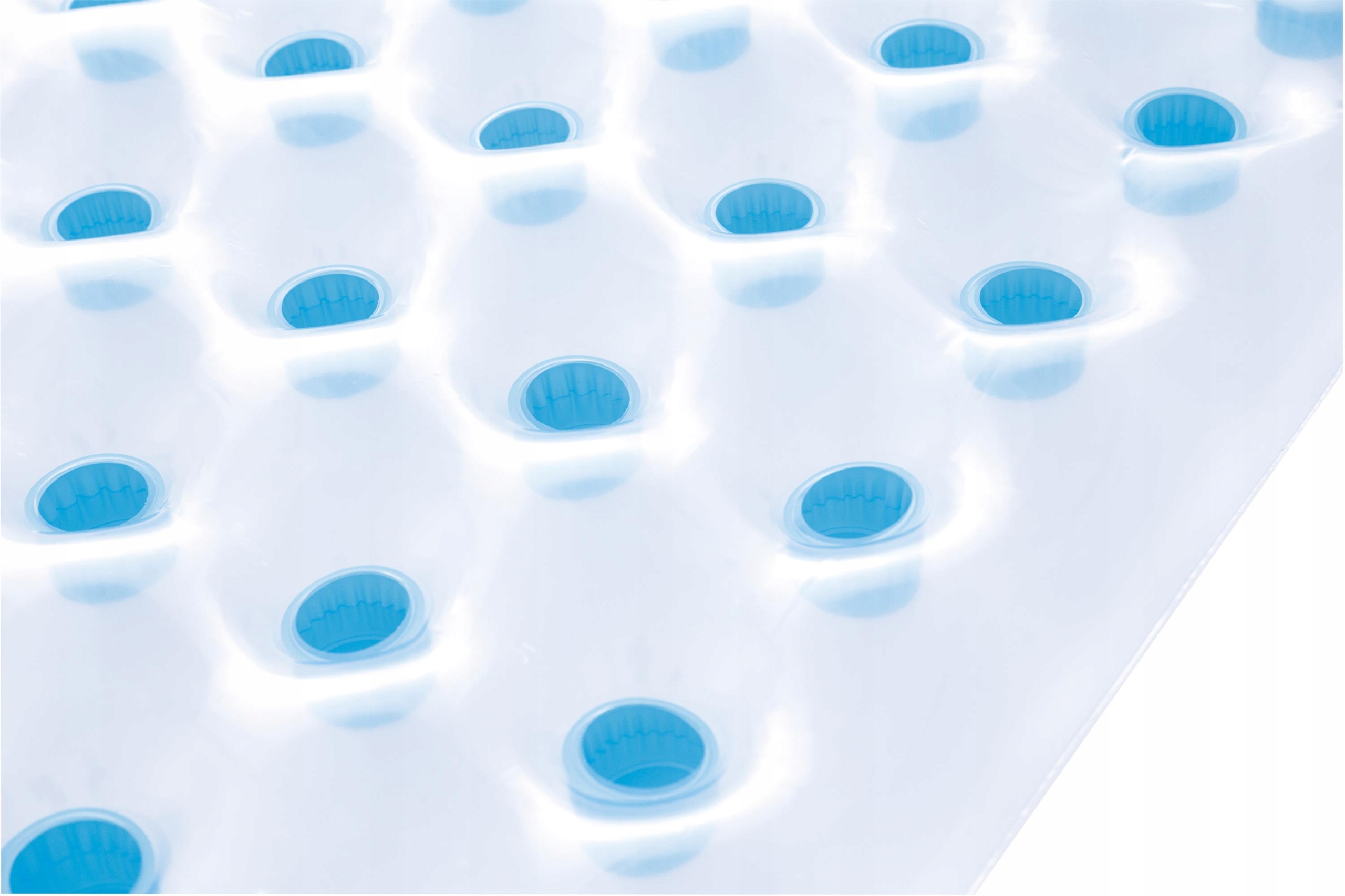Надувний пляжний матрац — це ідеальне рішення для всіх, хто хоче відпочити на воді. Виготовлений з вінілового матеріалу, стійкого до невеликих пошкоджень, він зручний і компактний, завдяки чому його можна переносити в будь-яке місце. Крім того, його перенесення полегшують пластикові ручки, розташовані по обидва боки матраца. Його еластичність амортизує удари і тим самим зменшує ризик проколу. Крім використання для плавання, він також може служити для відпочинку на траві, піску або іншій м'якій поверхні. Кольоровий дизайн і цікава форма привертають увагу і дозволяють швидко знайти матрац.Легке надування забезпечують клапани, що запобігають витоку повітря. Дві окремі повітряні камери дозволяють правильно надути матрац, а каркасна конструкція додатково гарантує його стабільність і підвищує комфорт використання.У комплекті також є латка, яка дозволяє виконати можливі ремонти в разі проколу матраца.
