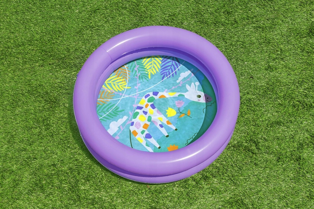 Створений, щоб заохотити дітей до руху та веселощів на свіжому повітрі, цей круглий дитячий басейн від Bestway® проходить випробування на якість і гарантує чисте задоволення! Веселі тваринні персонажі прикрашають дно цього надувного басейну, який доступний у 2 різних кольорах. Басейн виготовлений з міцного, перевіреного вінілу і має 2-кільцеву конструкцію. Плягатися на сонці ще ніколи не було так весело, як у цьому круглому 2-кільцевому басейні для дітей.