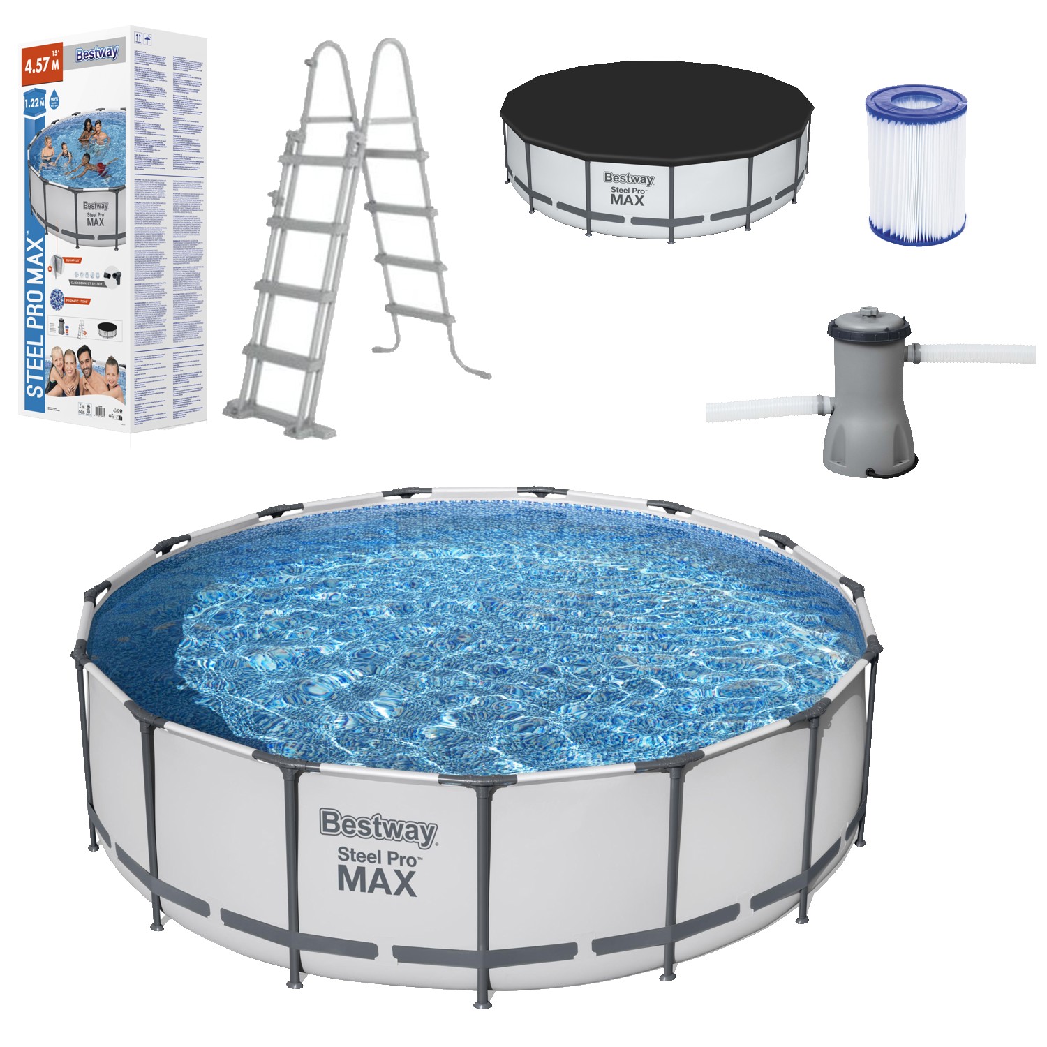 Немає нічого кращого, ніж мати власний басейн у саду! Наземний басейн Bestway® Steel Pro MAX™ пропонує надзвичайно міцну конструкцію за привабливою ціною.Міцна конструкціяКорозієстійка сталева рама оснащена нашою системою Seal &Lock™, яка забезпечує міцне і безпечне з'єднання рами, а також сумісність з аксесуарами, такими як підставки для чашок. Обшивка Tritech ™ виготовлена з міцного матеріалу, який посилений для забезпечення міцності і стійкості до проколів.Додаткові функціїЦей набір з наземним басейном також включає фільтрувальну помпу, драбинку та кришку для басейну. Крім того, цей басейн дуже легко збирати та розбирати для зберігання в міжсезоння. Не потрібні ніякі інструменти, а шланг підключається до вбудованого клапана з контролем потоку, що дозволяє швидко і легко злити воду з басейну.