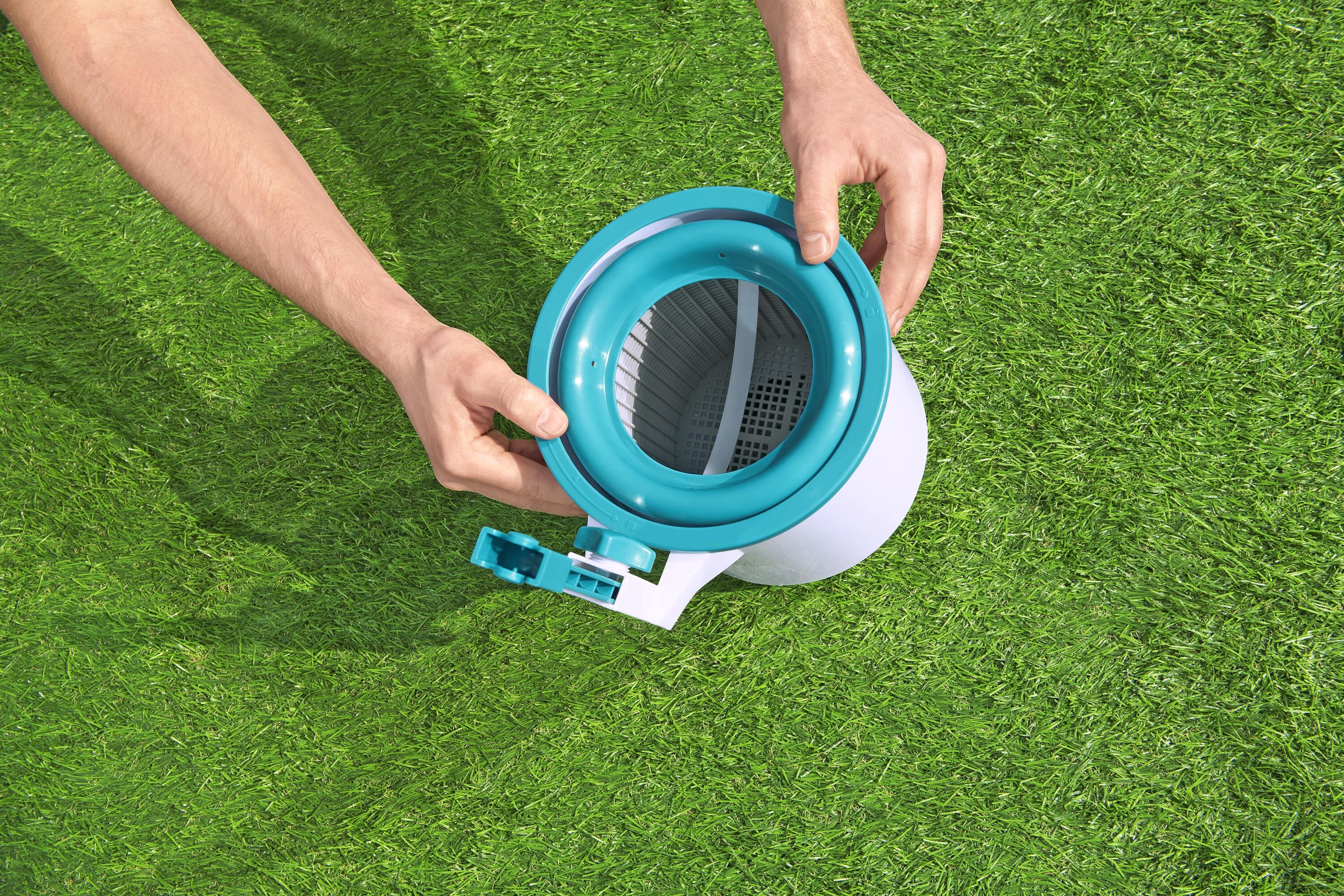 Скімер для очищення води – це необхідний елемент обладнання кожного басейну!Скімер, підключений до фільтрувальної помпи продуктивністю не менше 2006 літрів/год, служить для очищення поверхні води від плаваючих на ній опалих листя або комах.Скімер — це пристрій типу «2 в 1», який також підходить для дозування хімічних речовин для басейнів. Виготовлений з антикорозійного матеріалу.Підходить для всіх типів наземних басейнів, за винятком сталевих басейнів.