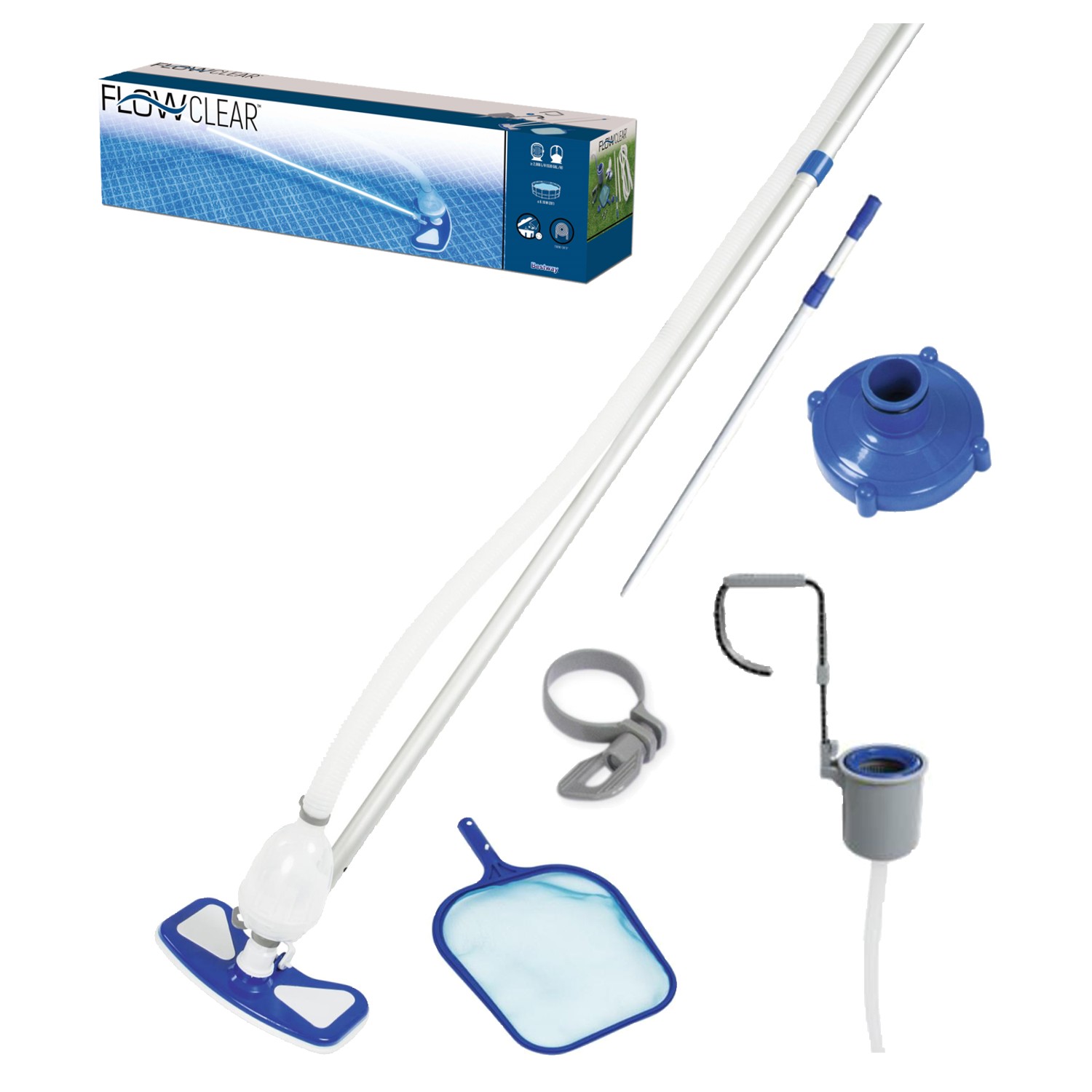 Набір для чищення басейну довжиною 2,79 м — це комплексне рішення, яке забезпечує легке та ефективне підтримання басейну в чистоті. До складу набору входить сітка для скімера та пилосос для басейну зі знімним багаторазовим мішком для збору забруднень. Набір містить різні типи з'єднувачів та піновіддільник, який можна підключити до фільтрувальної помпи з інтенсивністю потоку 2 006 л/год, що забезпечує ефективність очищення. Це ідеальний вибір для підтримки басейну в ідеальному стані протягом усього сезону.
