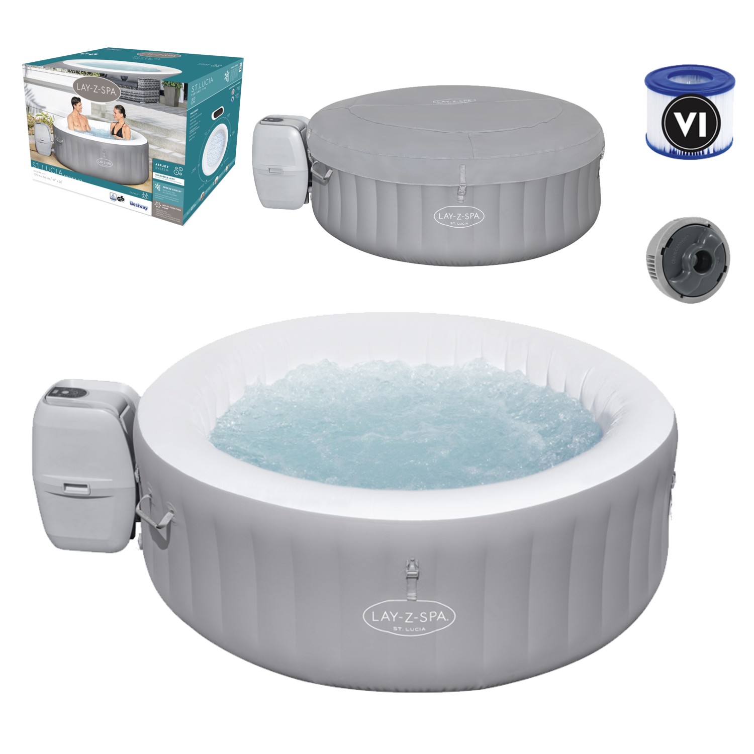 Після довгого дня немає нічого більш розслаблюючого, ніж зануритися в теплу бульбашкову воду у власному дворі. Lay-Z-Spa ™ St. Lucia AirJet забезпечує заспокійливий масаж для максимум 3 осіб, а також швидко і легко встановлюється. Цей спа-центр нагрівається до температури 40ºC (104ºF), щоб забезпечити максимальне розслаблення, коли ви оточені 110 бульбашками для масажу AirJet. Просто підключіть насос і спостерігайте, як спа наповнюється.