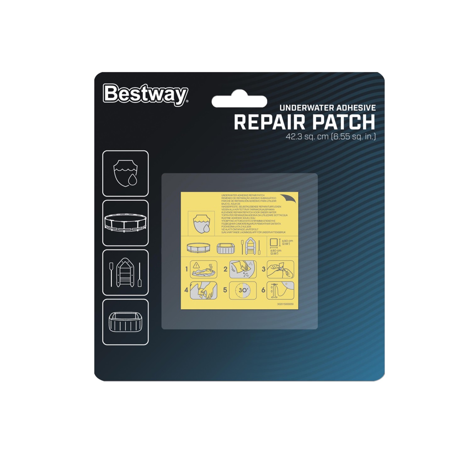 Міцні латки для ремонту надувних виробів Bestway® — це швидкий і простий спосіб залатати пошкодження надувних виробів.Кожна упаковка містить 10 міцних латок, які ідеально підходять для латання пошкоджень у басейнах, спа-басейнах та надувних матрацах.Ці латки є водонепроникними, що дозволяє ремонтувати пошкодження нижче лінії води в басейні або спа. Кожна латка готова до використання для ремонту проколів і потертостей.Щоб застосувати самоклеючі латки для ремонту, достатньо очистити пошкоджене місце на надувному елементі, відклеїти задню сторону латки, а потім ретельно приклеїти її на пошкоджене місце.