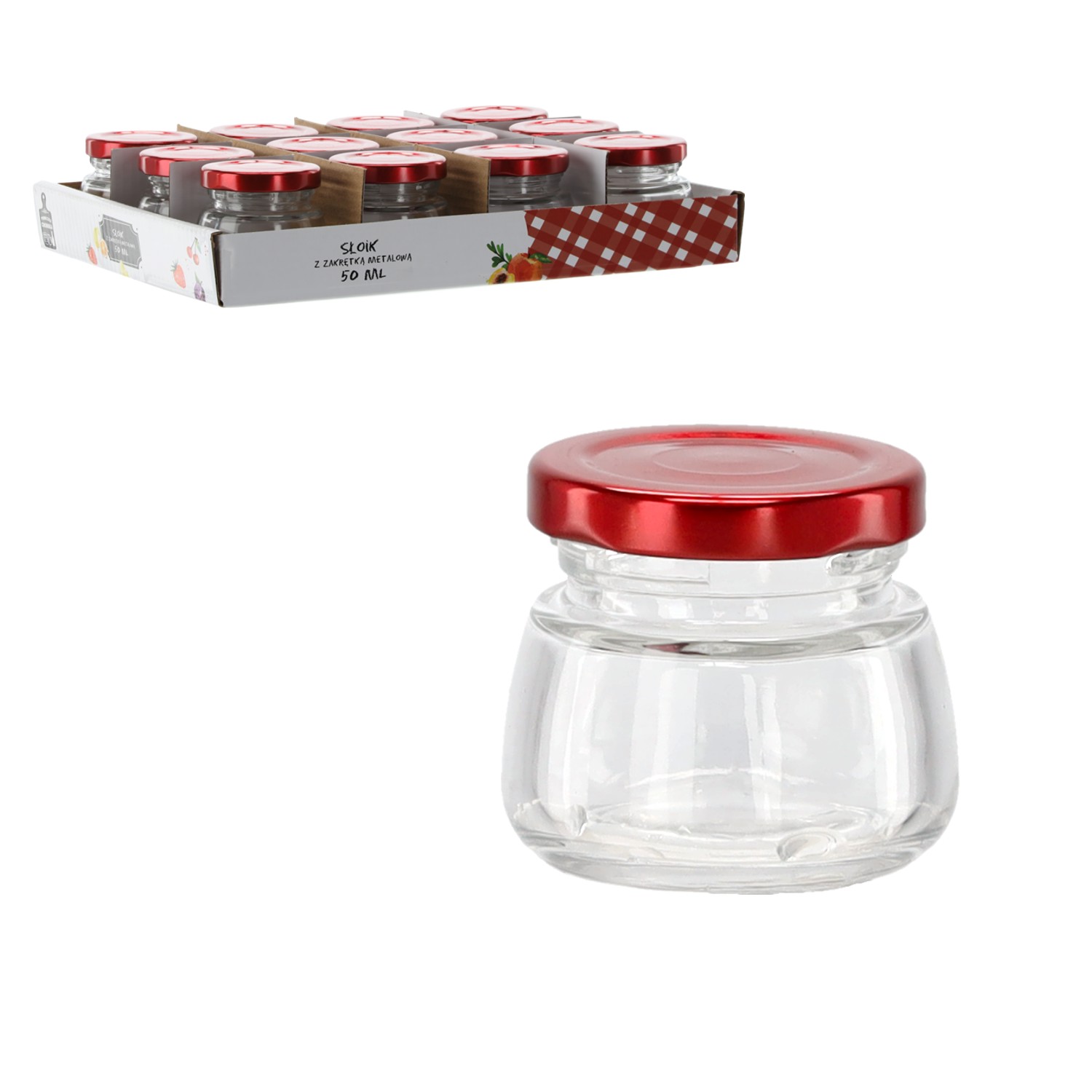 Склянка місткістю 150 мл, виготовлена з високоякісного скла, є ідеальним варіантом для зберігання меду, джемів, спецій та інших дрібних продуктів. Оснащена червоною металевою кришкою, вона забезпечує герметичність і свіжість продуктів, що зберігаються. Продукт упакований в дисплеї по 6 штук, що полегшує презентацію та роздрібний продаж.