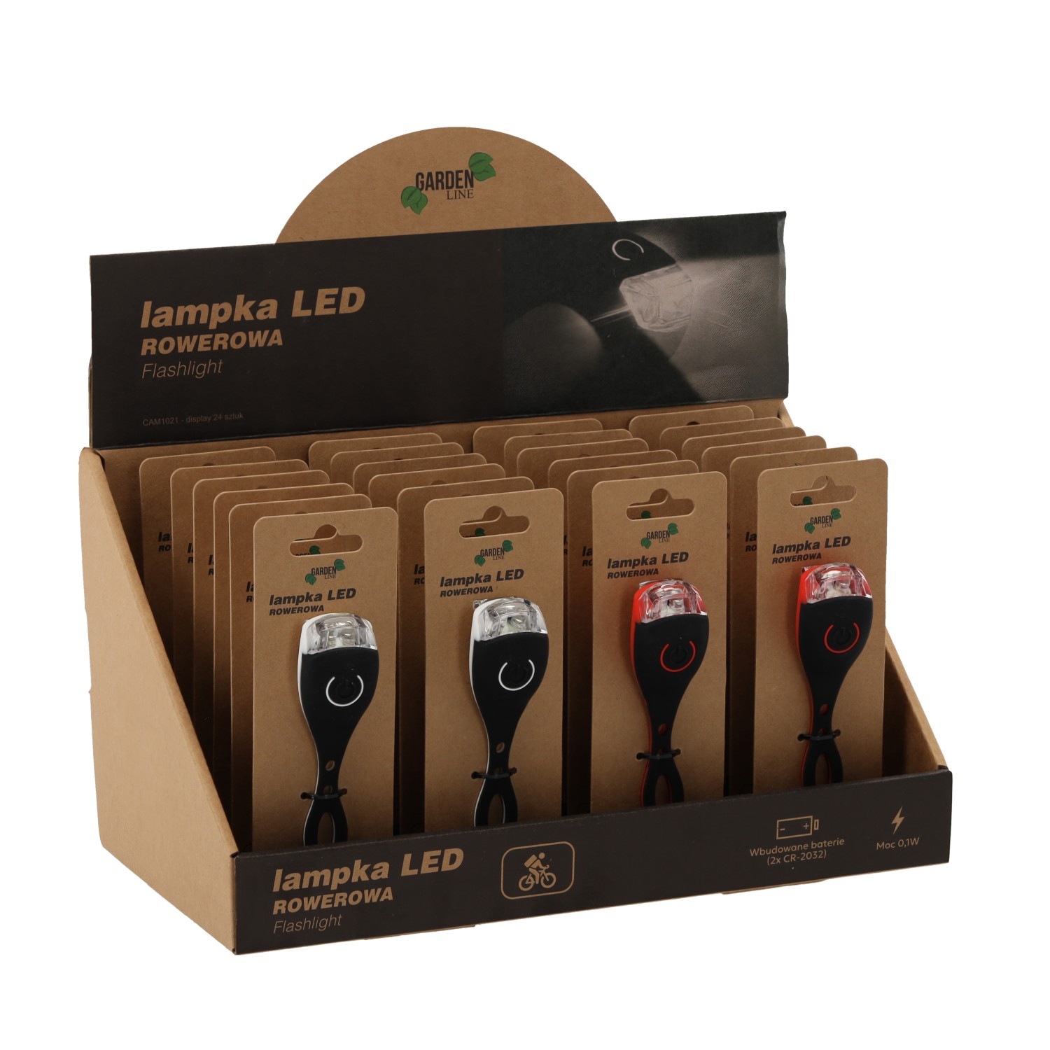 У комплекті є батарейки, а ліхтарик доступний у двох кольорах: **білому та червоному**. Упакований по 24 штуки на дисплеї, він також чудово підійде як роздрібний або рекламний продукт 🛍️
