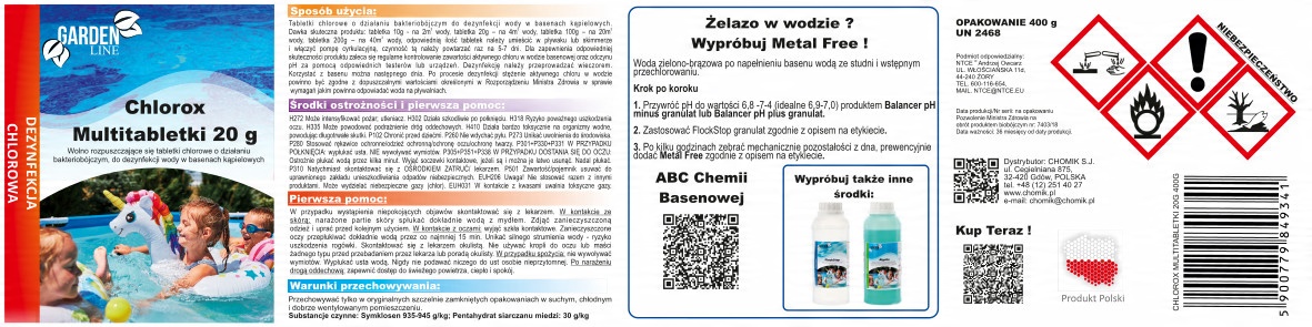 відповідну кількість таблеток слід помістити в поплавок або скімер і увімкнутициркуляційну помпу , цю процедуруслід повторювати раз на 5-7 днів. Для забезпечення належної ефективності продукту рекомендується регулярно контролювати вміст активного хлору у воді басейну та рН за допомогою відповідних тестерів або приладів. Дезінфекцію слід проводити ввечері.   Басейном можна користуватися наступного дня.   Після процесу дезінфекції концентрація активного хлору у воді повинна відповідати допустимим значенням, визначеним у Постанові Міністра охорони здоров'я про вимоги, якимповинна відповідати вода у басейнах.