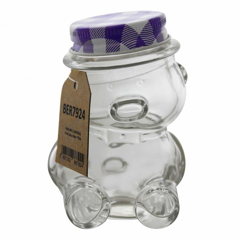 Склянка ведмедик місткістю 80 мл — це чарівний спосіб зберігання меду, джемів, спецій та інших дрібних продуктів. Оснащена герметичною кришкою, вона забезпечує свіжість продуктів, що зберігаються. Скляні банки упаковані в дисплей по 24 штуки, що полегшує презентацію та роздрібний продаж. Ідеально підходить для декору та зберігання, доступний у різних кольорах.