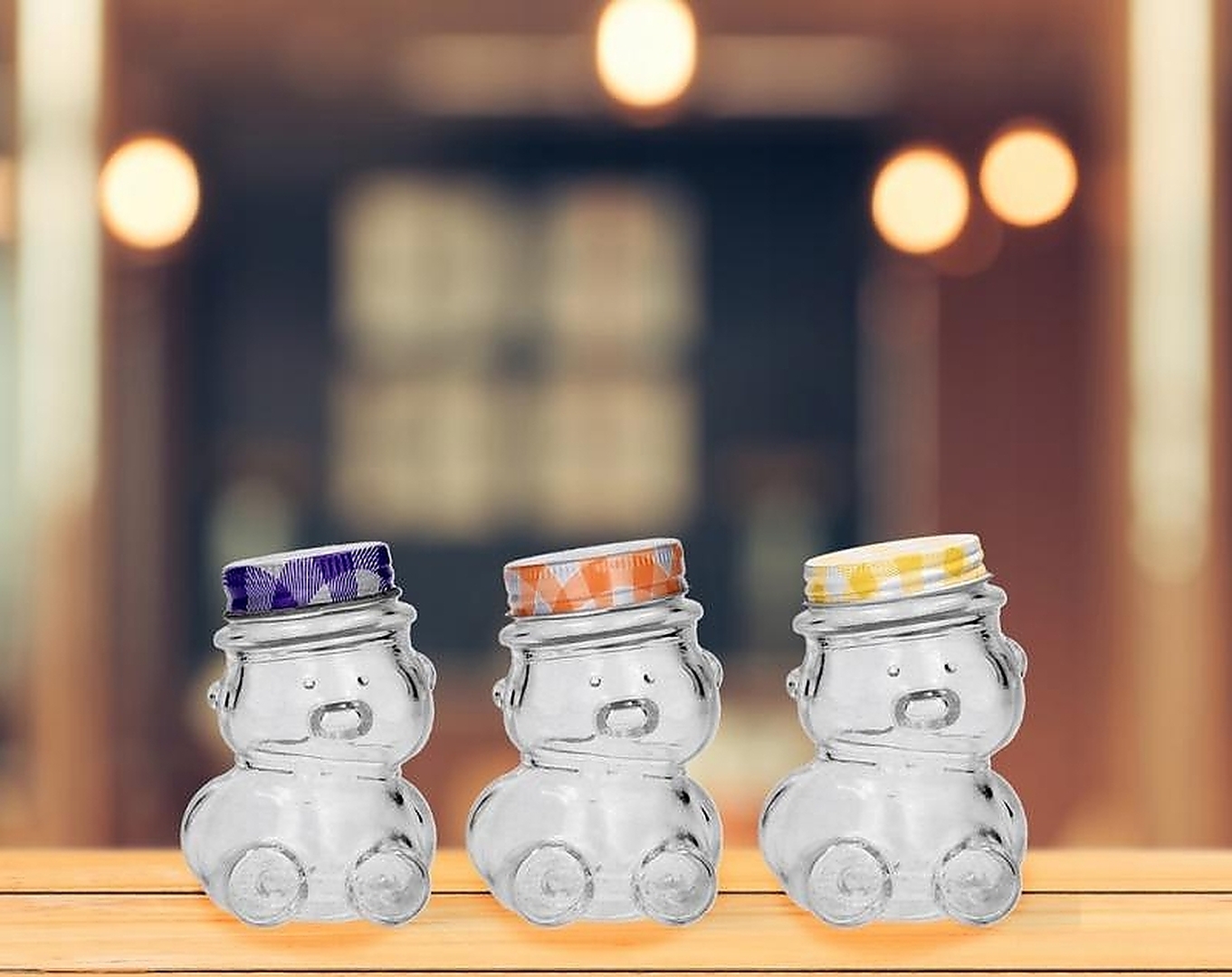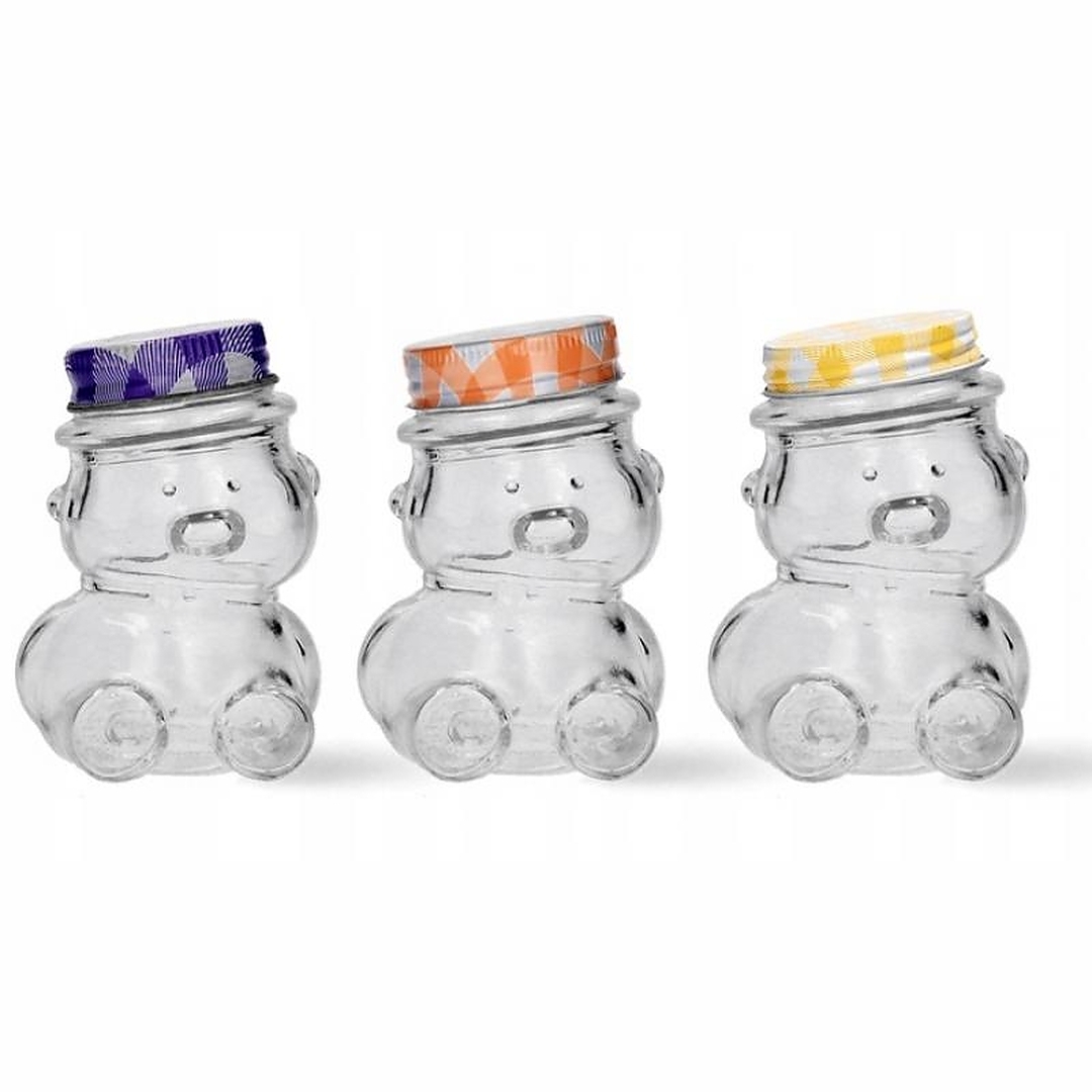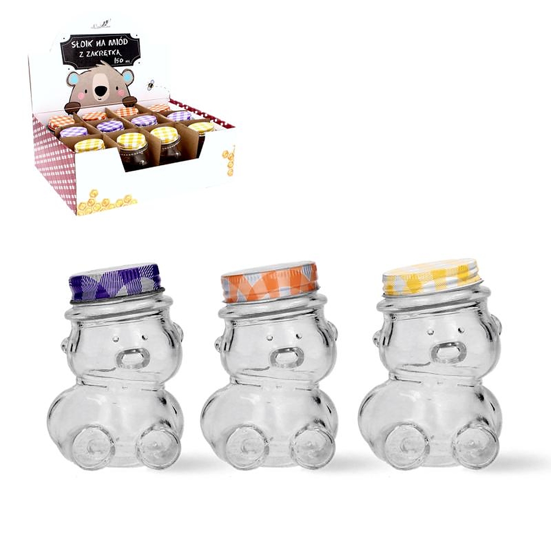 Склянка ведмедик місткістю 150 мл — це чарівний спосіб зберігання меду, джемів, спецій та інших дрібних продуктів. Оснащена герметичною кришкою, вона забезпечує свіжість продуктів, що зберігаються. Скляні банки упаковані в дисплей по 24 штуки, що полегшує презентацію та роздрібний продаж. Ідеально підходить для декору та зберігання, доступний у різних кольорах.