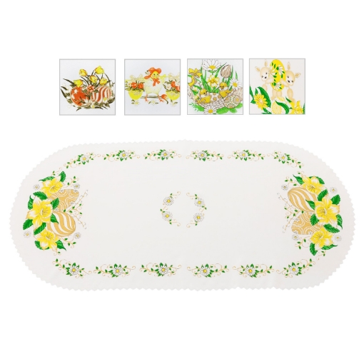 Елегантна святкова скатертинаідеально підійдедля великоднього столу. Скатертина має овальну форму. Розмір: 50x100 смЦіна вказана за 1 шт.
