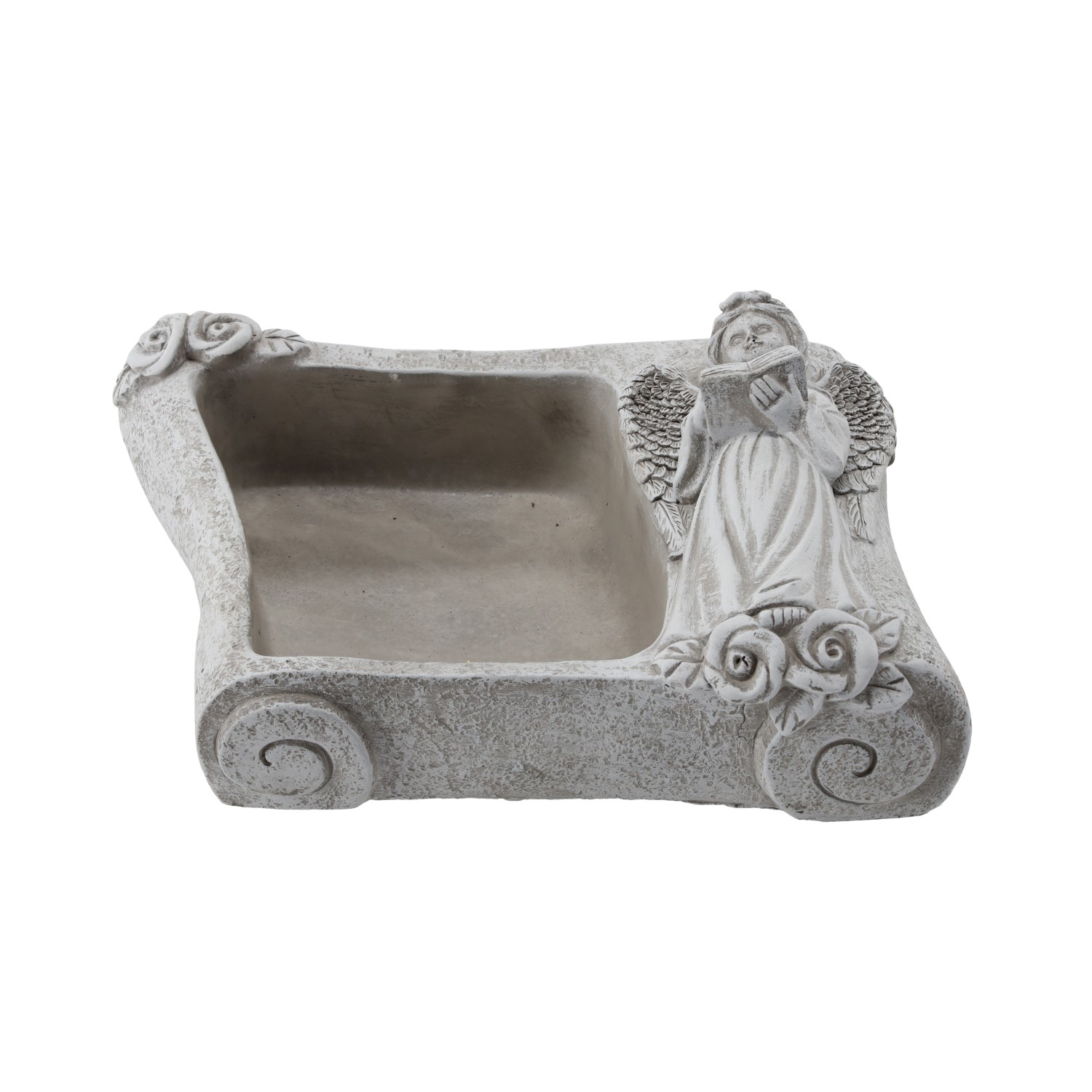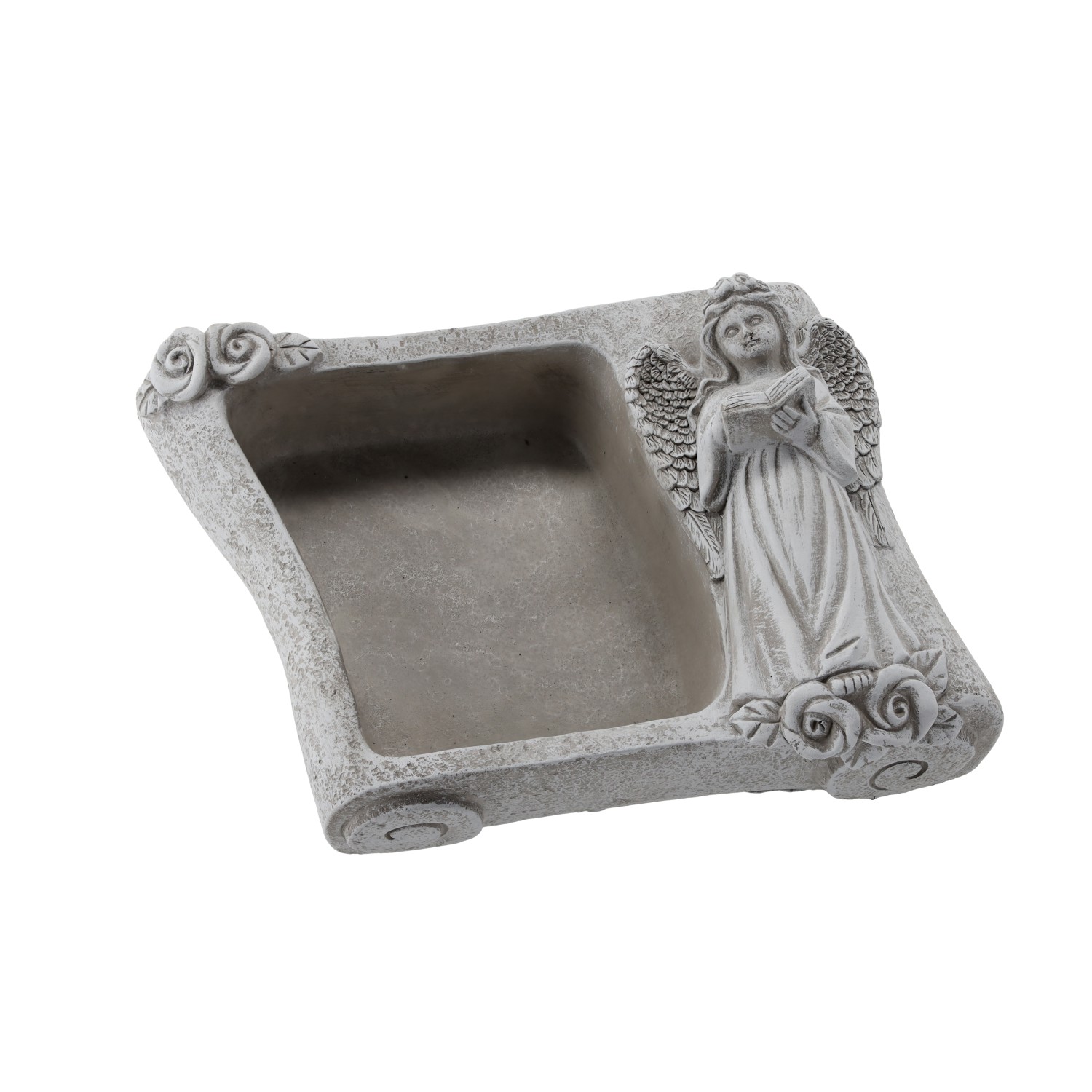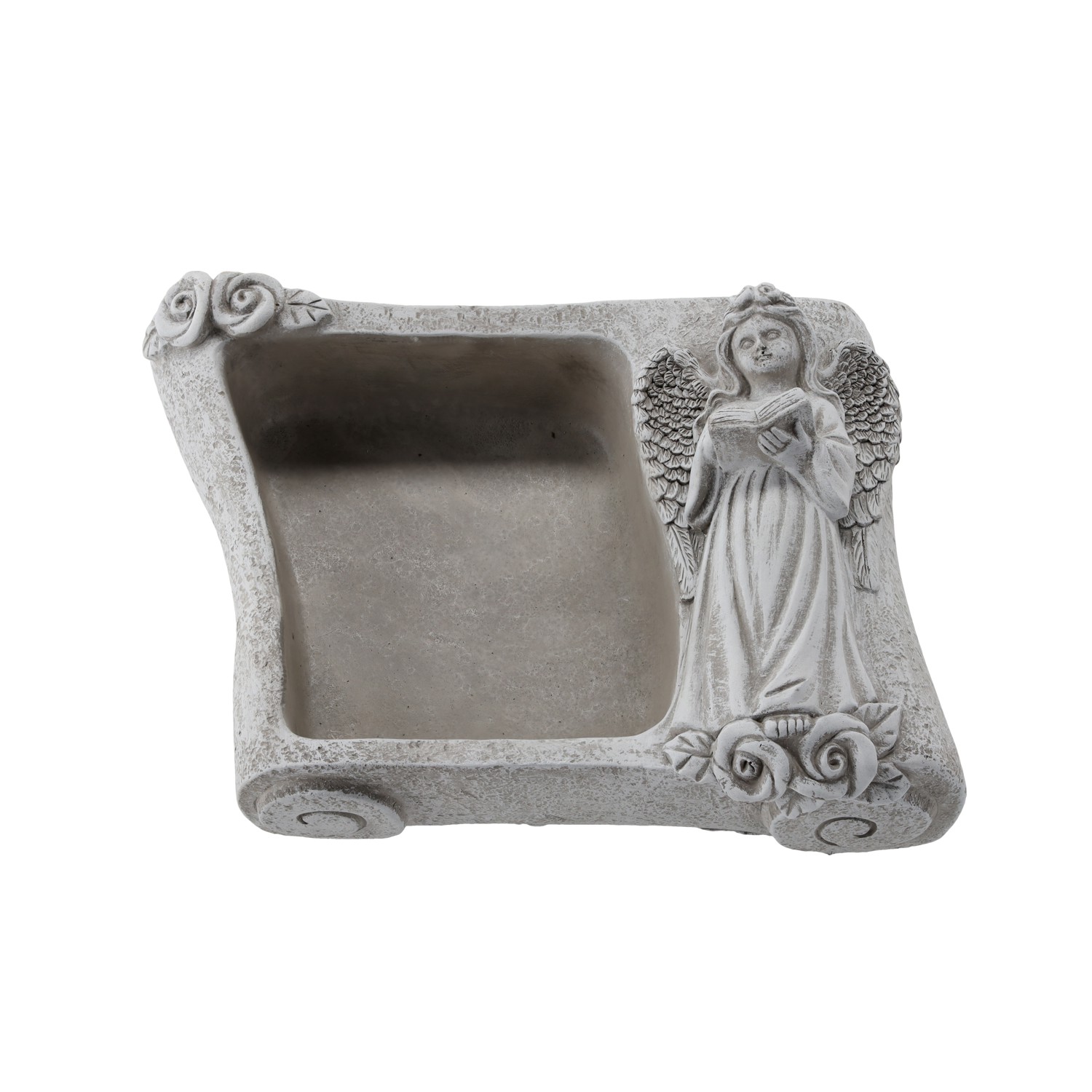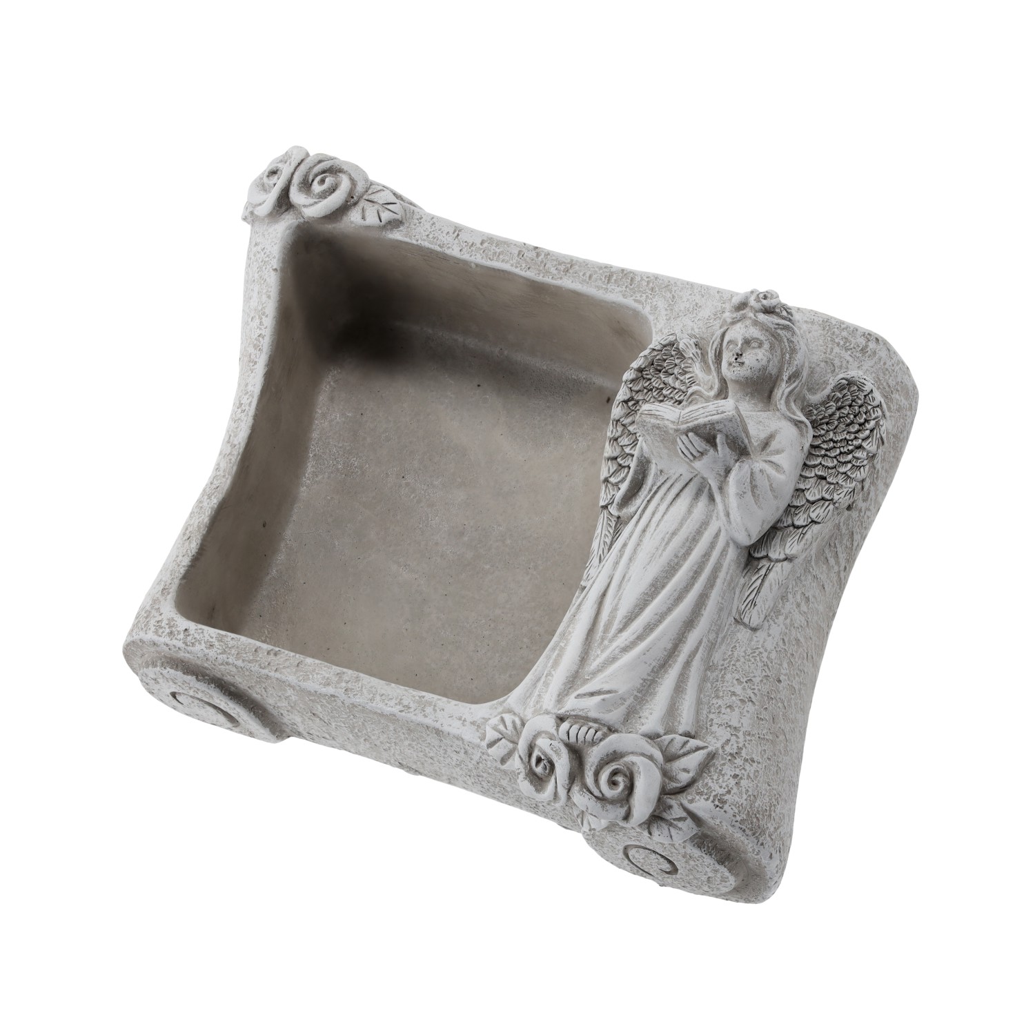 Ретельно виготовлений горщик/кашпо з мотивом ангела. Ідеальна основа для квіткових композицій на могилах, яка тонко підкреслить пам'ять про близьких. Виготовлений з цементу сірого кольору.