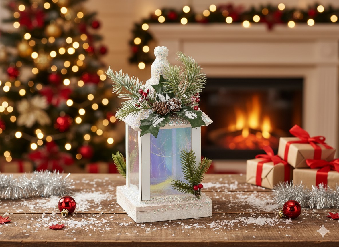 ⭐ Стильне оздоблення з різдвяними деталями – шишки, гілочки, червоні ягоди та блискучий сніг.