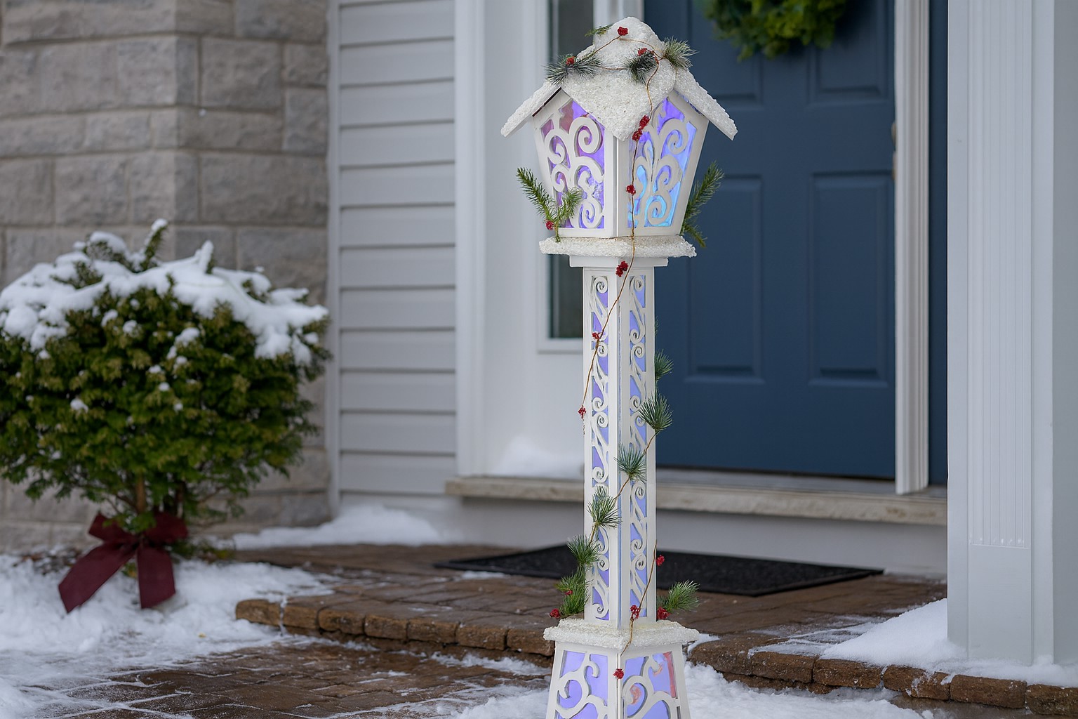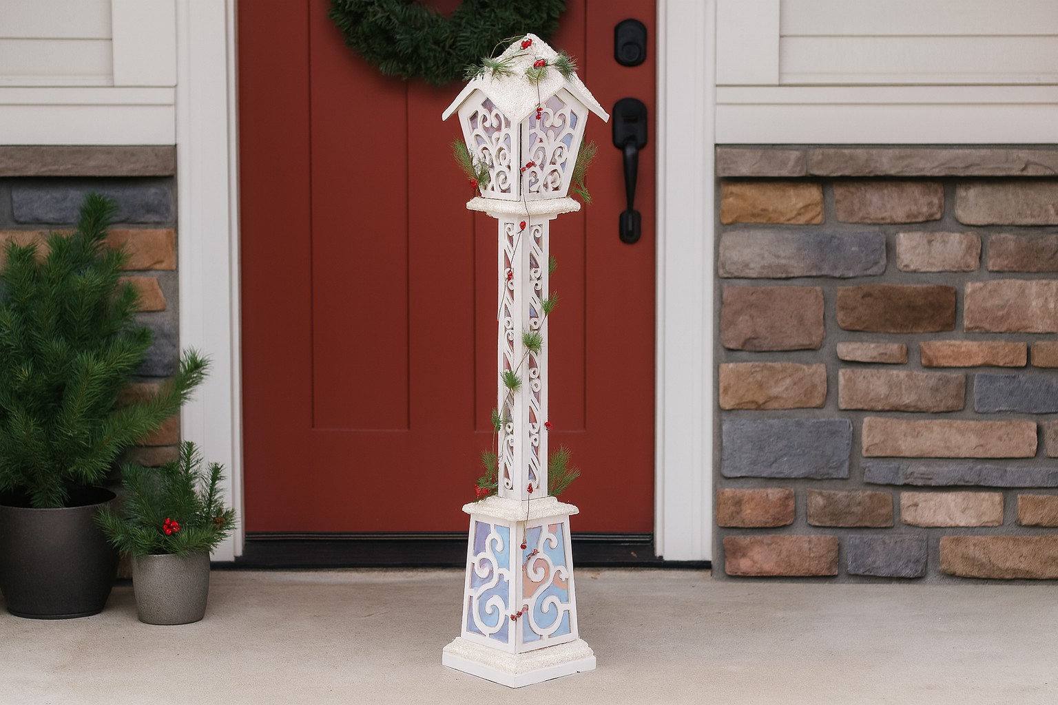 Внесіть у свій дім магію свят завдяки цій унікальній святковій ліхтарні LED. ✨ Її елегантний білий колір, декоративні деталі та ніжне світло створюють неповторну атмосферу, сповнену тепла і чару. 🎄 Вона ідеально підійде як прикраса перед входом у будинок, у вітальні або на терасі, додаючи кожному інтер'єру трохи святкової магії. 🌟