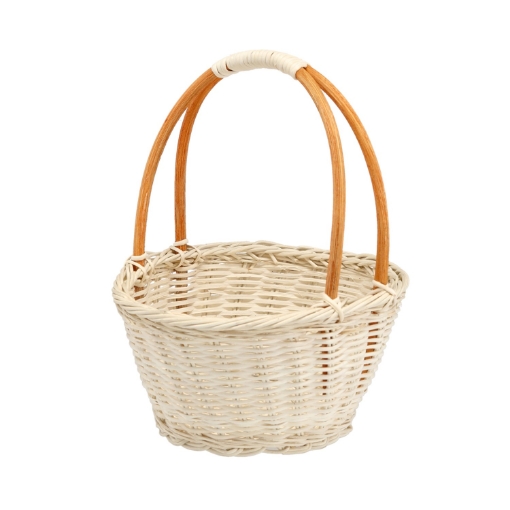 Міцний круглий кошик малого розміру (S) з розмірами: 25x14 (висота з ручкою 32 см). Завдяки простій конструкції та точному виконанню його можна комбінувати з будь-якими аксесуарами, створюючи різноманітні декорації. Кошик ідеально підійде для Великої суботи і вмістить всі продукти для великоднього кошика. Має 2 з'єднані між собою ручки, завдяки чому є зручним у використанні та міцним.
