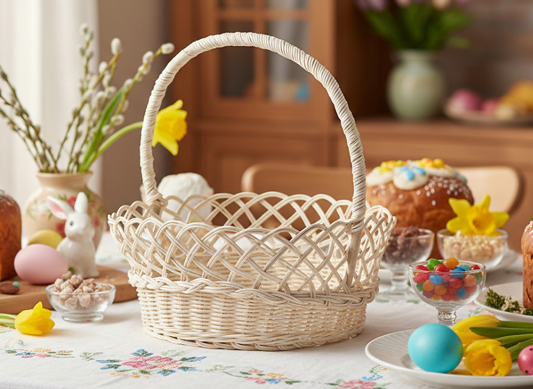Овальний ратановий кошик з ручкою – це поєднання класики та зручності. Ідеально підходить для Великодня, свят, декорування столу або як кошик для подарунків. Натуральний вигляд і м'яка овальна лінія роблять його придатним для будь-якого інтер'єру.