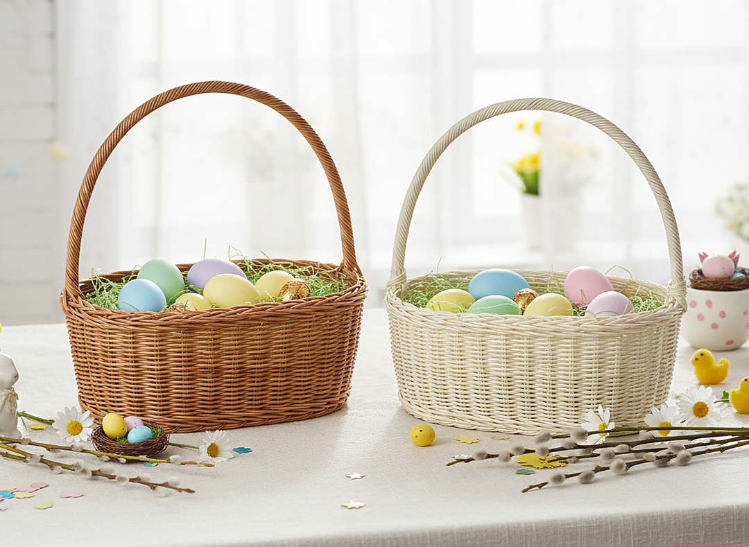 Шукаєте великий і міцний кошик на Великдень? Ця модель з ратану з ручкою — чудовий варіант для святкових декорацій, пакування подарунків, а також для щоденного використання. Вражаючий розмір і ратанова структура додають йому класу та стилю.