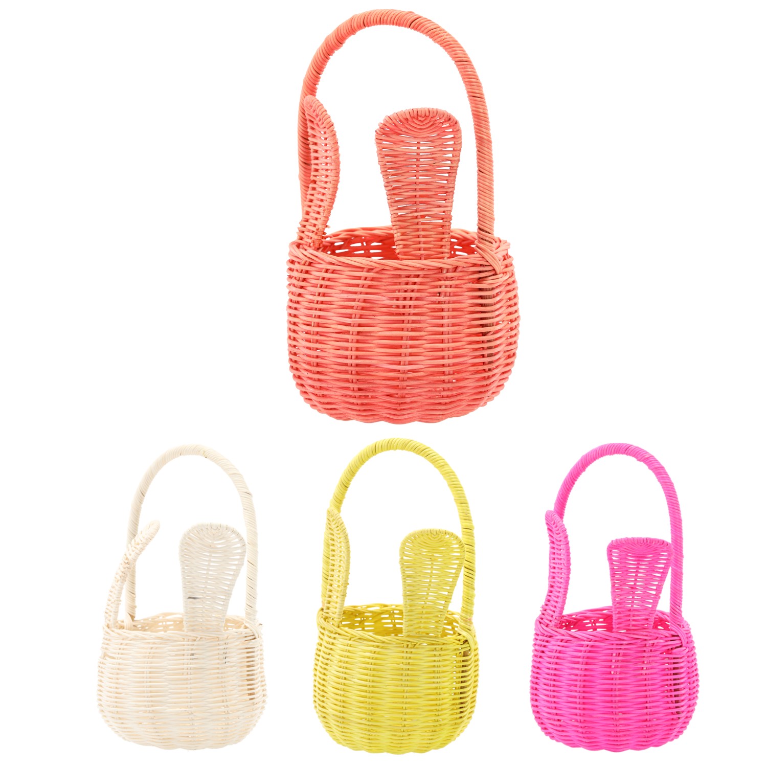 Доступний у чотирьох пастельних кольорах: жовтому, помаранчевому, рожевому та білому. Кошик має зручну ручку та вушка, які додають йому характеру і роблять його схожим на міні-зайчика!