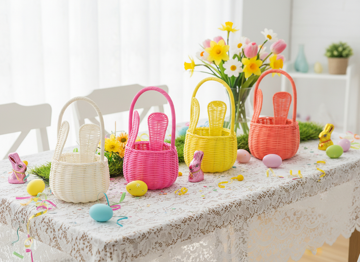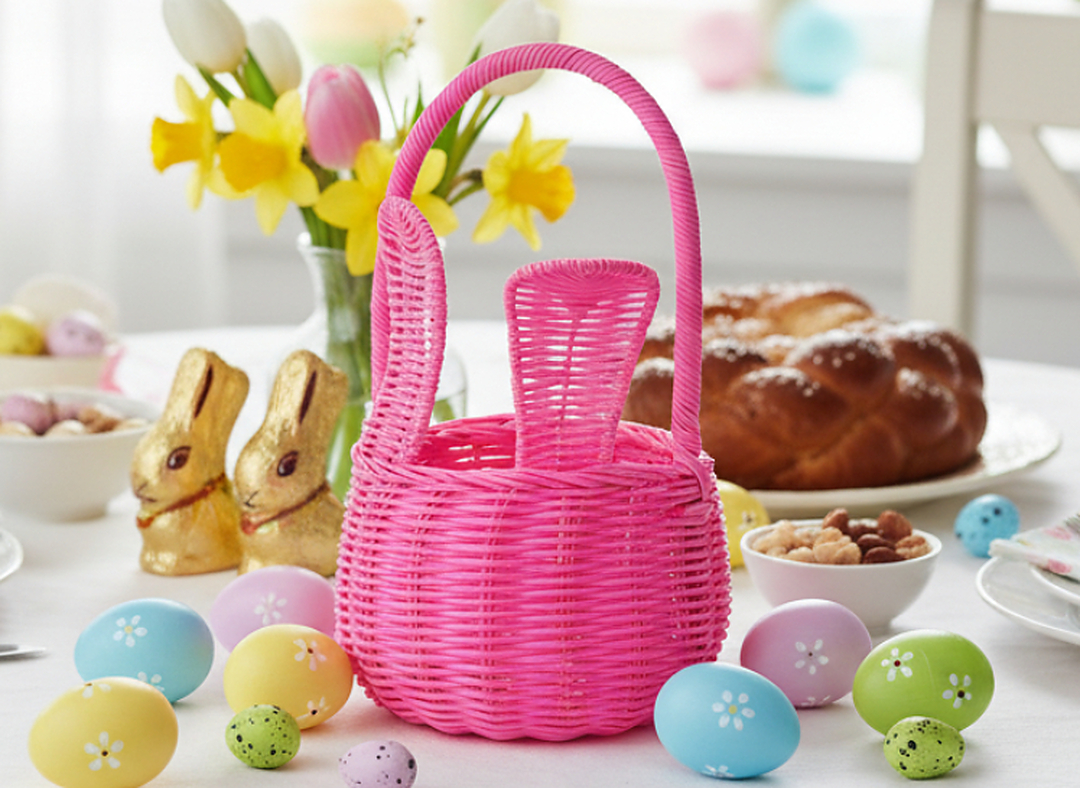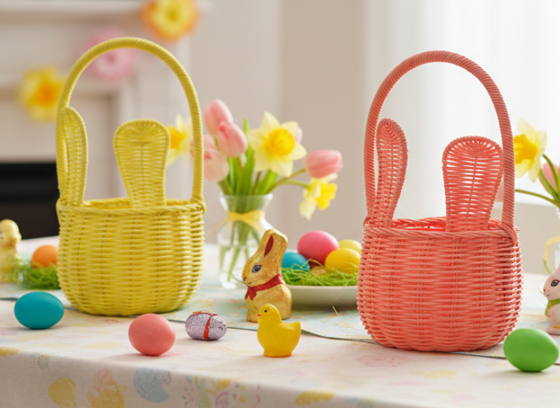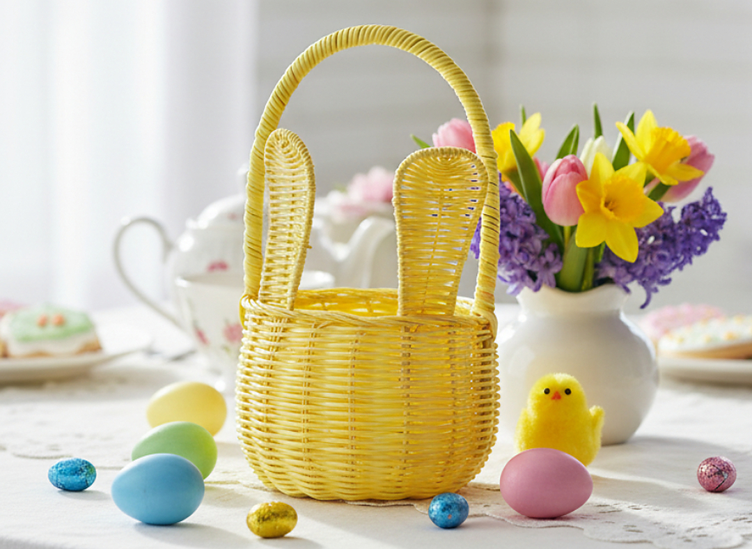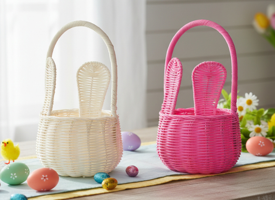 Унікальний великодній кошик у стилі ротанга з чарівними вухами – хіт святкових декорацій! Ідеально підходить для експозиції, пакування подарунків або як оригінальний аксесуар для великоднього столу. 🧺