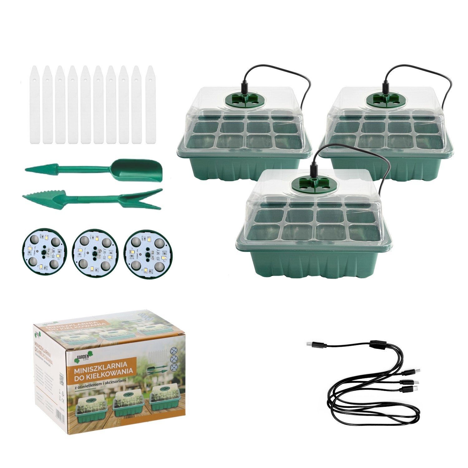 Хочете створити домашню теплицю, яка піклуватиметься про ваші рослини цілий рік? Цей розширений набір для пророщування – ідеальне рішення! 💚 3 лотки з кришками, енергозберігаючі LED-лампи, садові інструменти та етикетки для позначення рослин – все, що тобі потрібно, щоб насолоджуватися пишною зеленню від насіння до саджанця 🌱