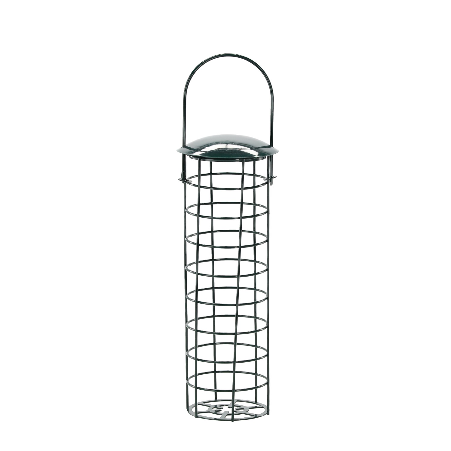 Практична годівниця у формі трубки, виготовлена з металевого дроту, оснащена елементом для підвішування. Легко наповнюється, ідеально підходить для жирових кульок, забезпечує зручне годування птахів у вашому саду.