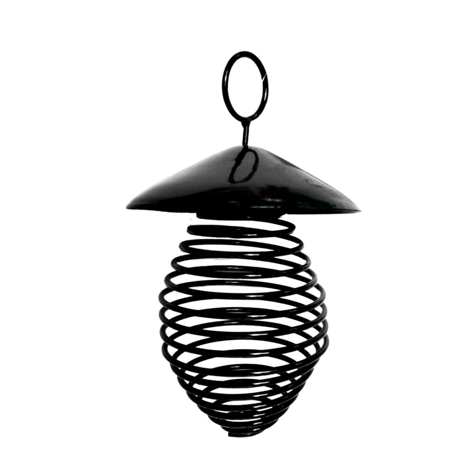 Овальна годівниця виготовлена з металевого прута та металу з порошковим покриттям в елегантному чорному кольорі. Оснащена елементом для підвішування, ідеально підходить для легкого поповнення жирових кульок та годування птахів у саду.