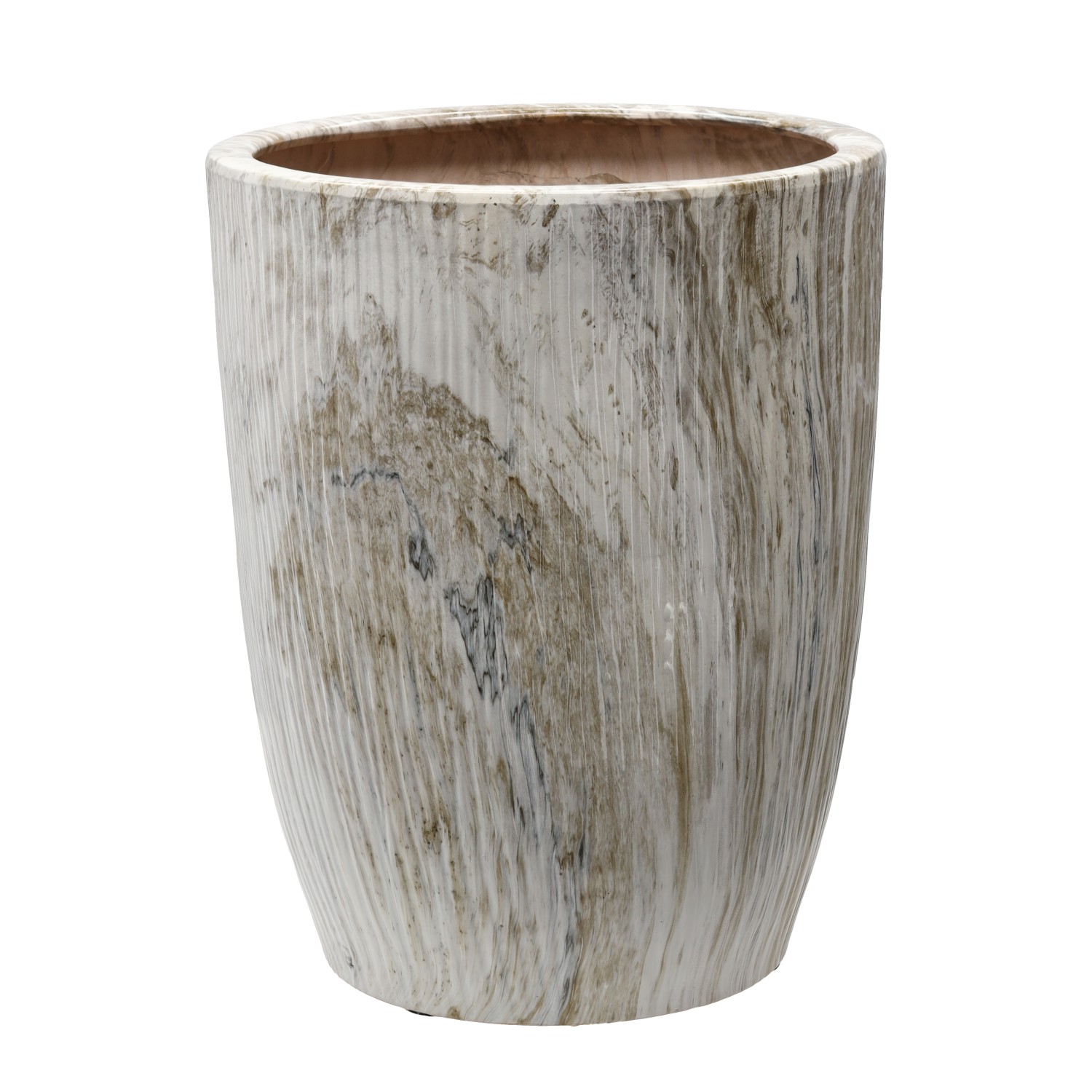 Елегантний керамічний чохол для горщика розміром 37 × 38 × 47 см, прикрашений декоративним візерунком. Ідеально підходить для експонування рослин як у будинку, так і на терасі або в саду. Виготовлений з міцної кераміки, забезпечує стабільність і підкреслює естетичні якості рослин. Стильне оздоблення додає їй характеру, роблячи її ефектним декоративним елементом інтер'єру або зовнішнього простору. Виріб стійкий до температур до -10°C.