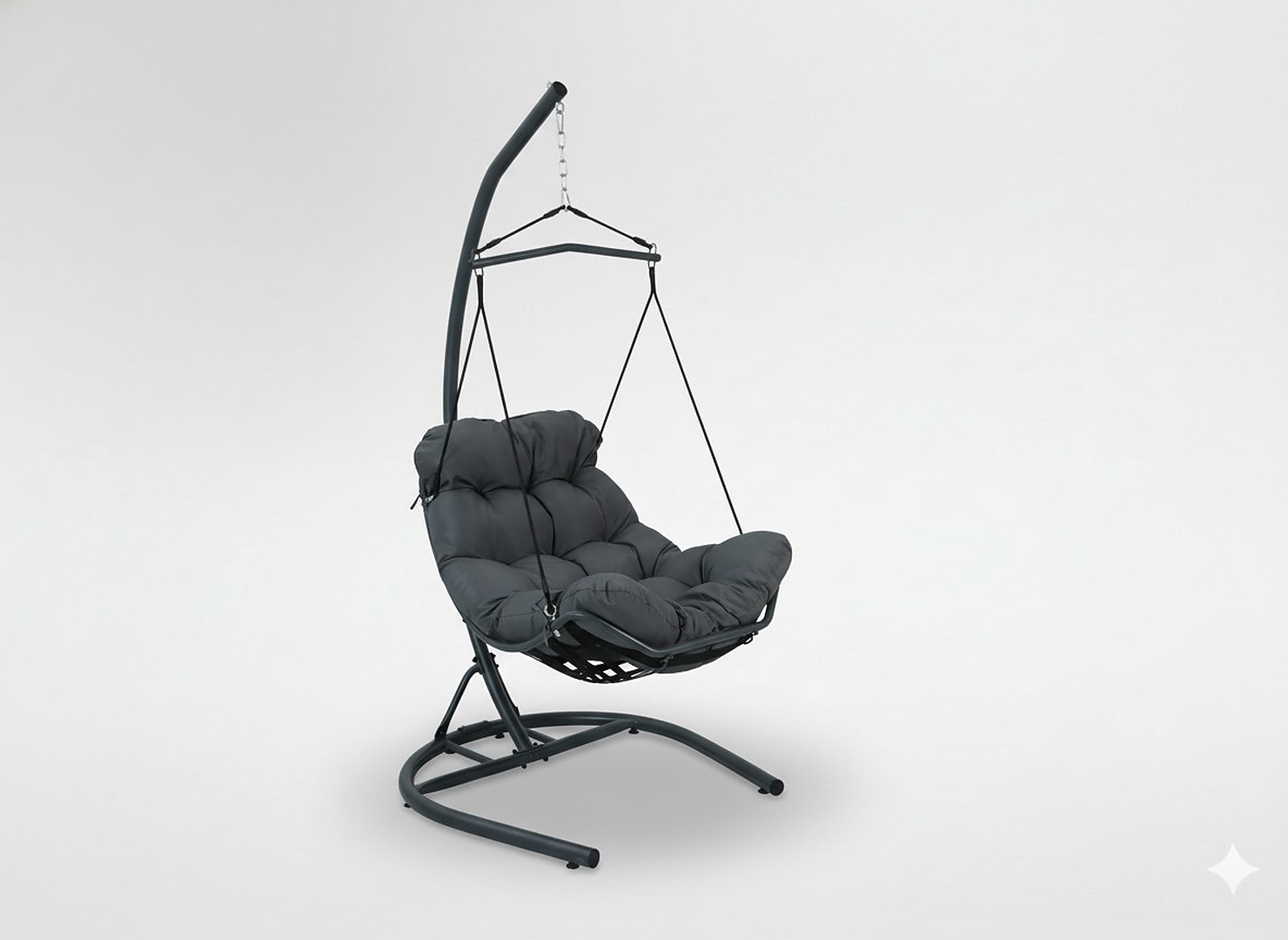 ПІДВІСНЕ КРІСЛО TUMBER — АНТРАЦИТОВЕ, АНТРАЦИТОВА ПОДУШКА, АНТРАЦИТОВА РАМА 🌿