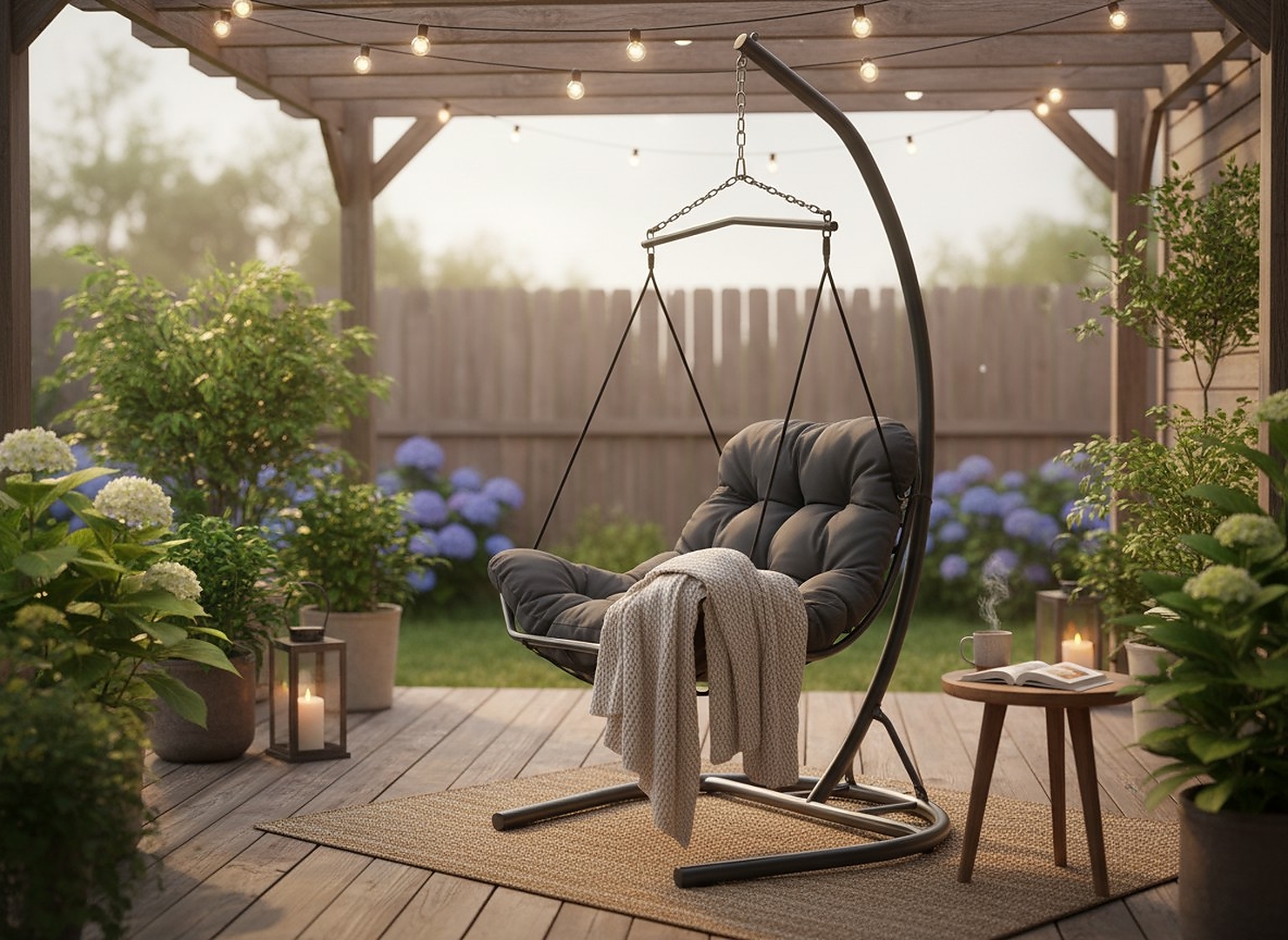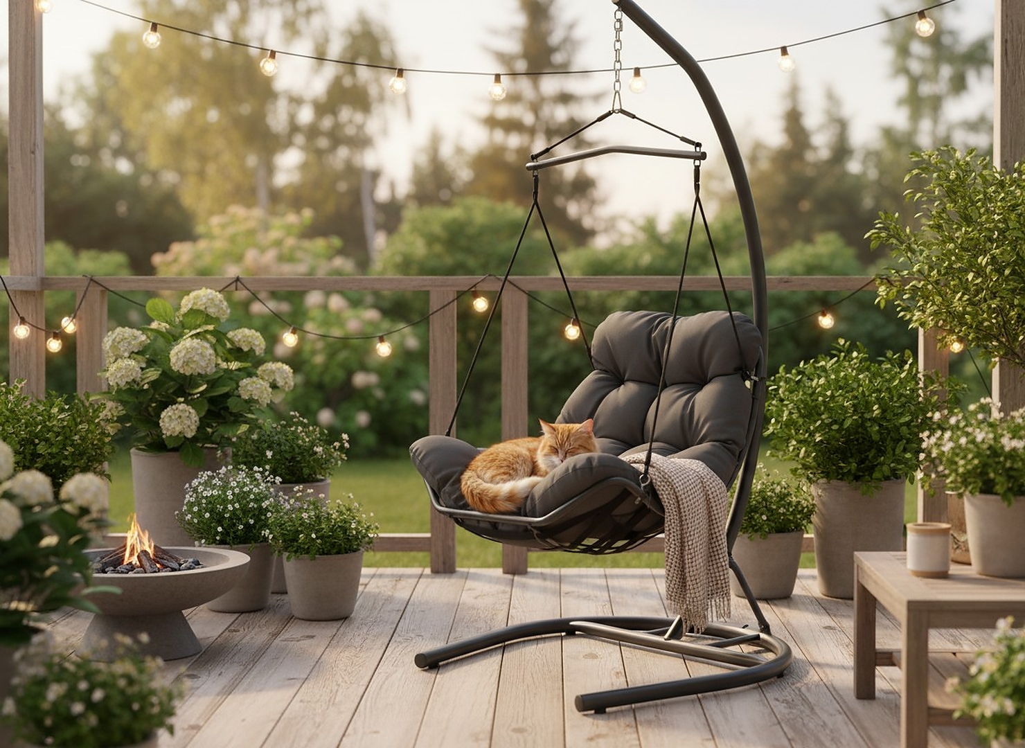 Хочете створити свою приватну зону відпочинку? Підвісне крісло TUMBER в елегантному антрацитовому кольорі забезпечить вам комфорт найвищого рівня – у саду, на терасі чи у вітальні 🖤