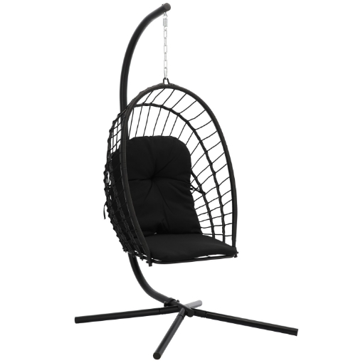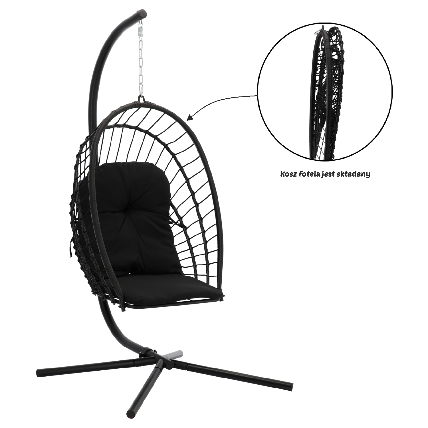 СКЛАДНИЙ ПІДВІСНИЙ КРІСЛО ERIS ЧОРНИЙ, ПОДУШКА - ЧОРНА, РАМА - ЧОРНА 🖤