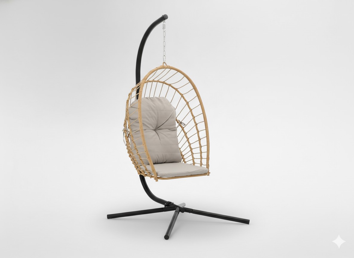 СКЛАДНИЙ ПІДВІСНИЙ КРІСЛО ERIS БРОНЗОВИЙ, ПОДУШКА - СІРА, РАМА - ЧОРНА ☕
