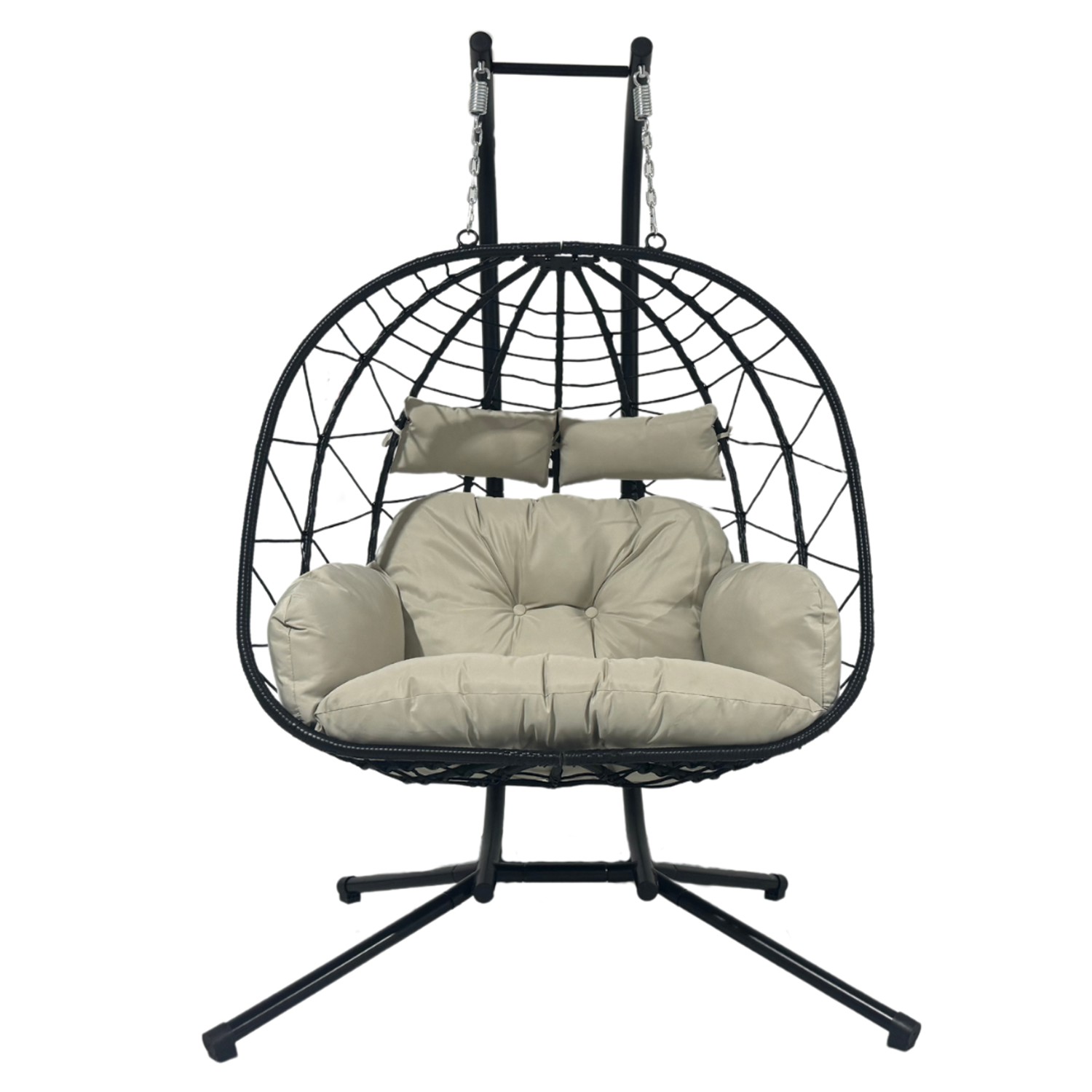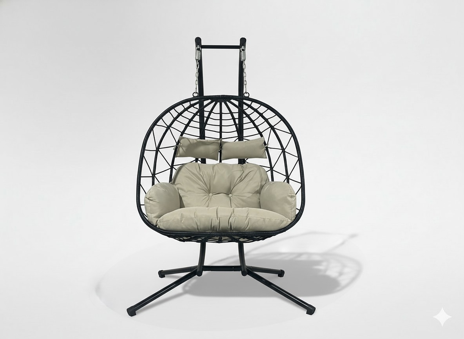 ДВОМІСНЕ СКЛАДНЕ ПІДВІСНЕ КРІСЛО LUVO, ЧОРНЕ, ПОДУШКА — СВІТЛО-СІРА, РАМА — ЧОРНА 🖤