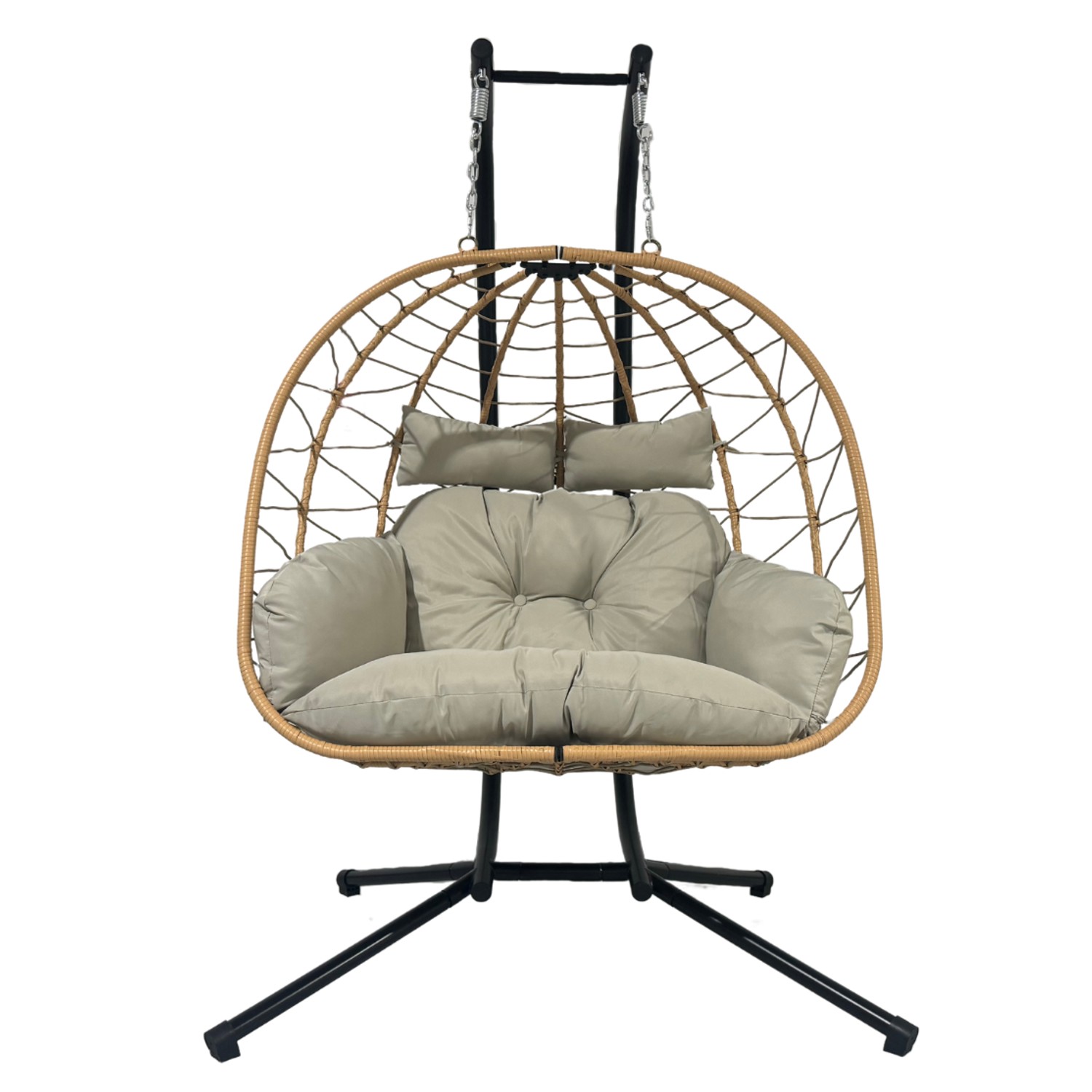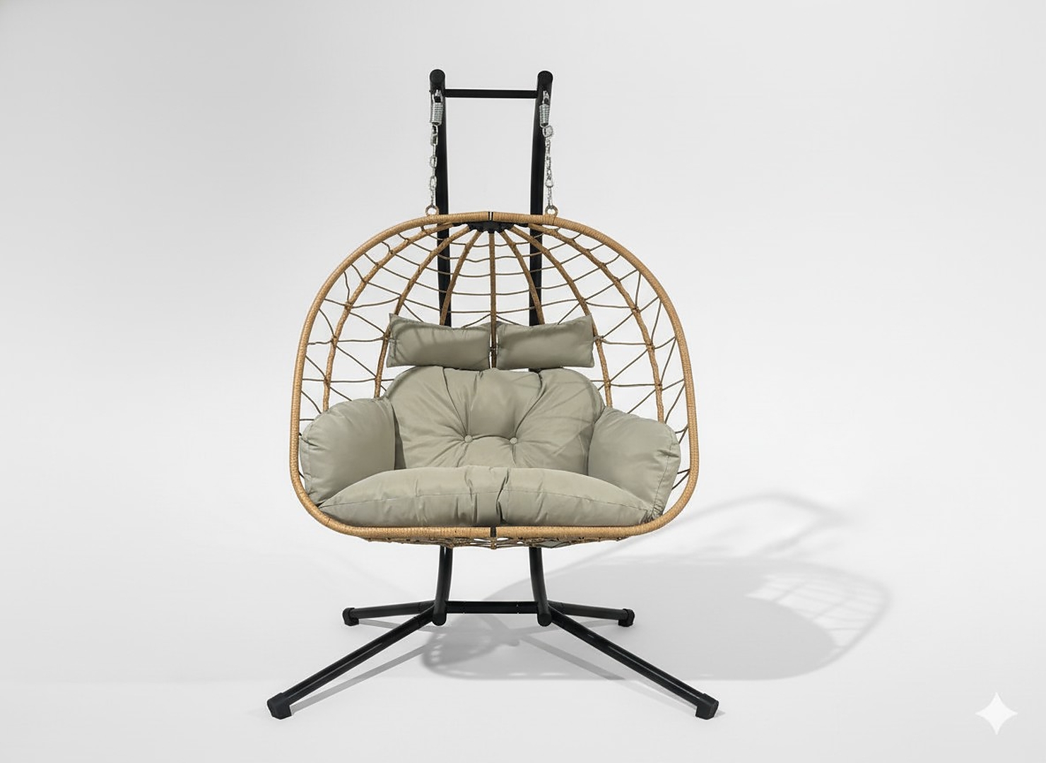 ДВОМІСНЕ ПІДВІСНЕ КРІСЛО LUVO КОРИЧНЕВИЙ, ПОДУШКА — СВІТЛО-СІРИЙ, РАМА — ЧОРНА 🪑