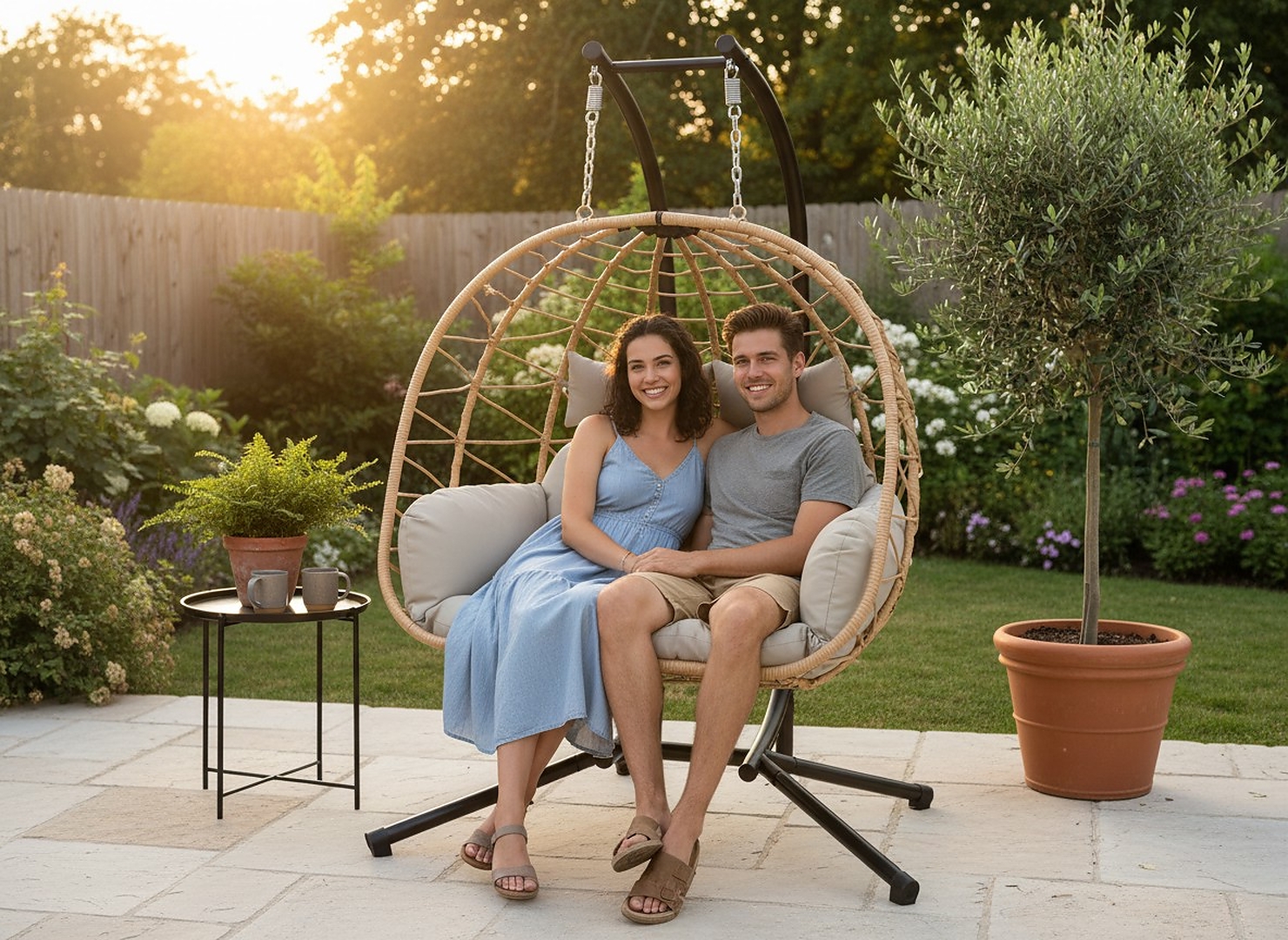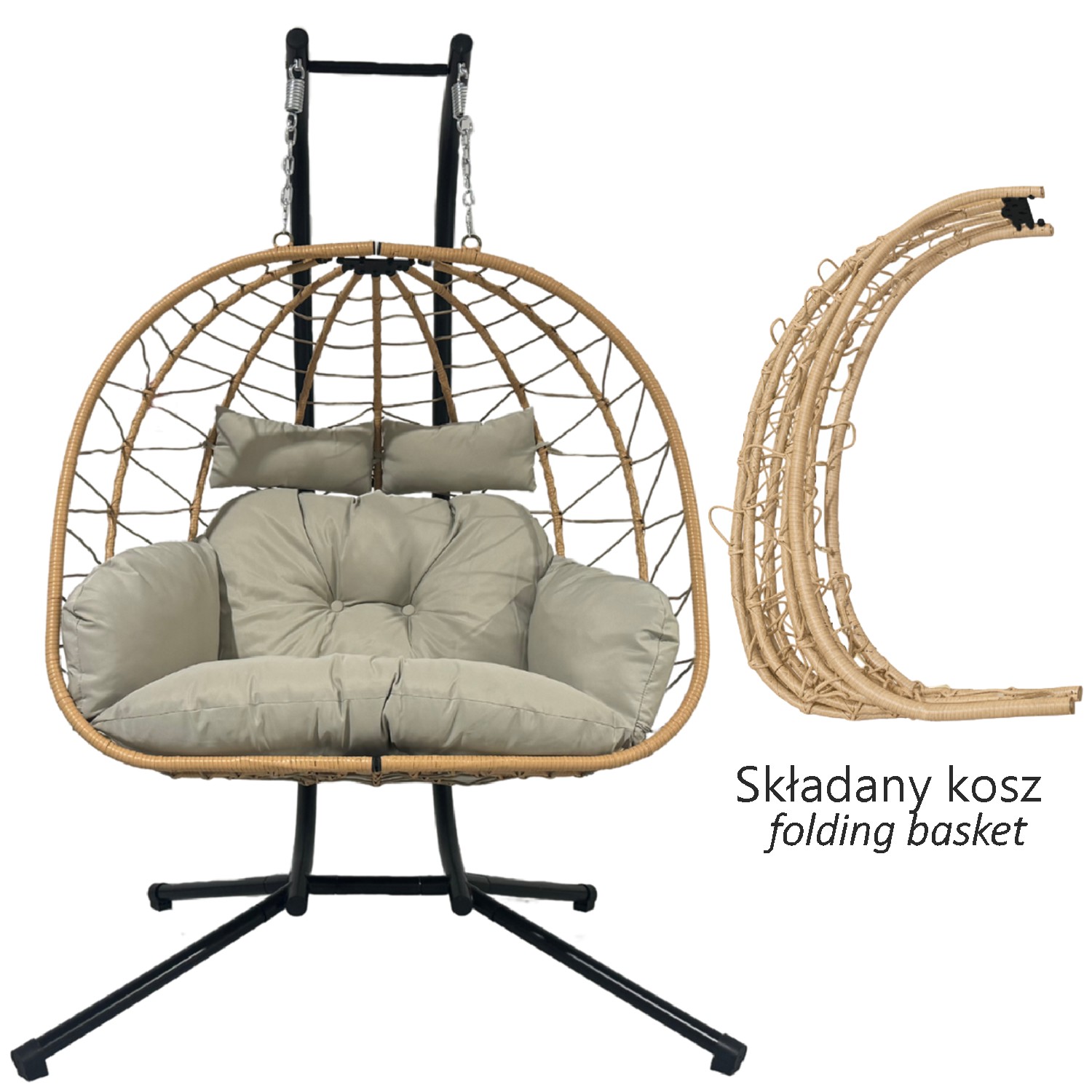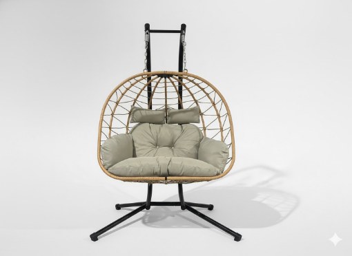 Перетворіть свій сад, терасу або вітальню на справжню зону відпочинку! Подвійне підвісне крісло LUVO — це ідеальне поєднання комфорту, стилю та функціональності. Воно вміщує двох осіб, забезпечуючи спільні моменти релаксу на м'якій світло-сірій подушці.