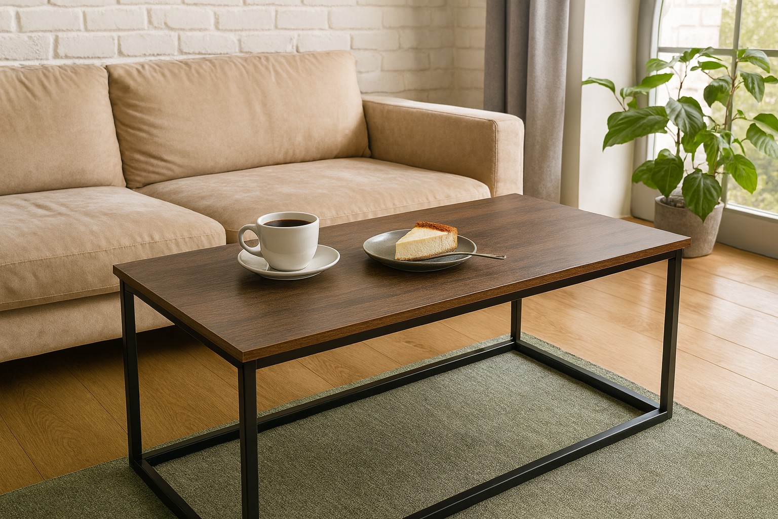 ✨ Кавовий столик у стилі лофт з коричневою стільницею, що імітує дерево – індустріальна елегантність для вашої вітальні!