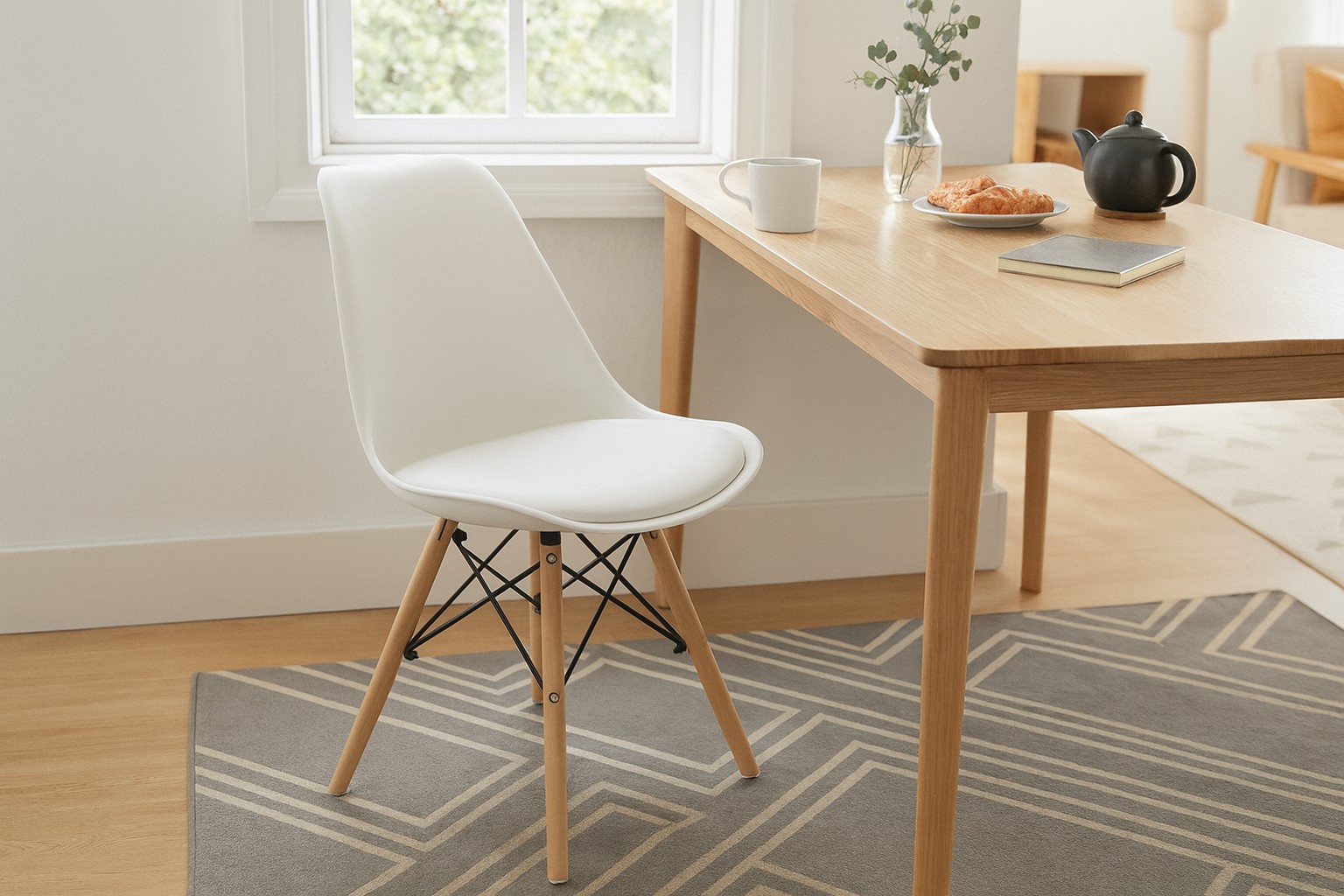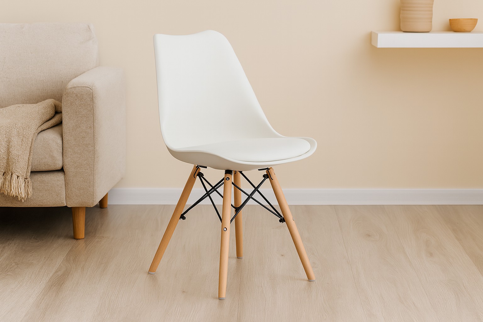 Це пластикове крісло на дерев'яних ніжках – поєднання дизайну, міцності та комфорту. Завдяки класичному білому кольору та простоті форми ви легко підберете його до будь-якого інтер'єру, створивши простір, сповнений гармонії та елегантності 🤍.