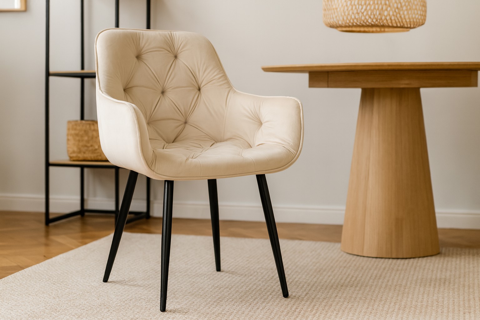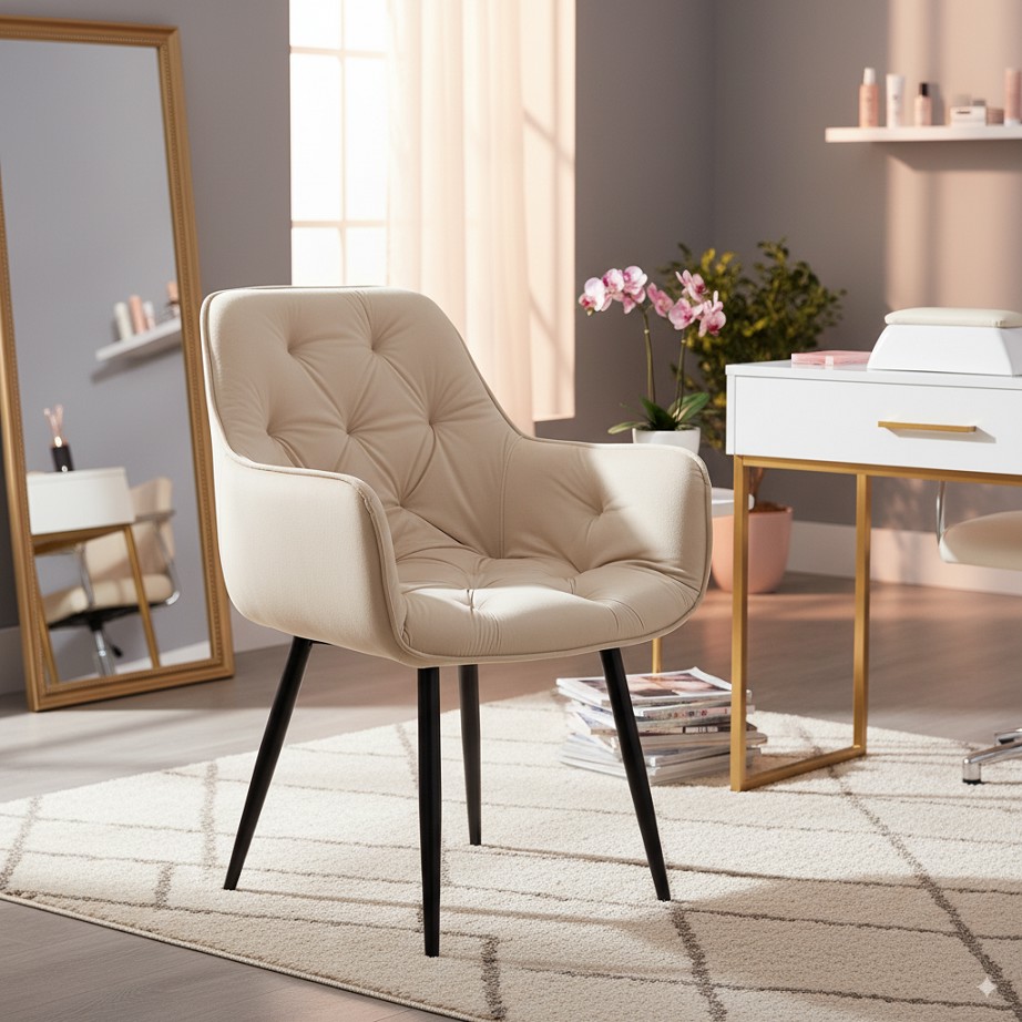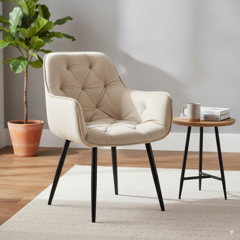 Хочете додати своєму інтер'єру трохи елегантності ✨ і тепла 🔆? Цей велюровий крісло з бежевим стьобанням 🤍 – ідеальне рішення! М'який, приємний на дотик матеріал 🤲, ретельна простьобана обробка 💎 та міцна конструкція 💪 роблять крісло не тільки зручним 😌, але й стильним 🏡. Воно ідеально підійде для їдальні 🍴, вітальні 🛋️ або офісу 💼.