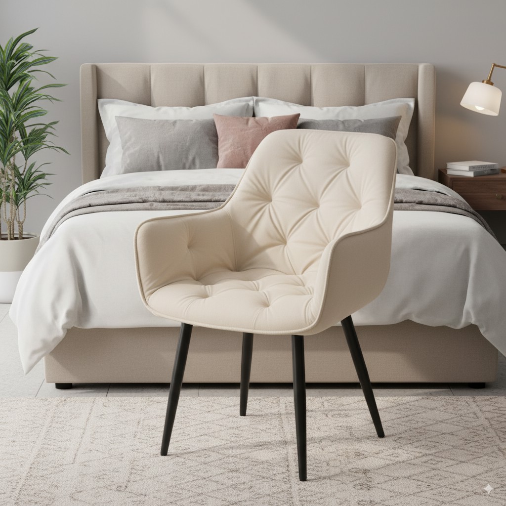 Велюрове крісло з бежевим стьобаним візерунком 🤍 – це пропозиція для тих, хто цінує елегантність ✨ і позачасовий стиль 👑. Він забезпечує комфорт сидіння 😌, а його нейтральний колір 🎨 легко впишеться в будь-який інтер'єр 🏡, додавши йому тепла 🔆 і затишку 🕯️. Він чудово підійде як для щоденного використання 📆, так і для зустрічей з родиною 👨👩👧👦 або друзями 🥂.