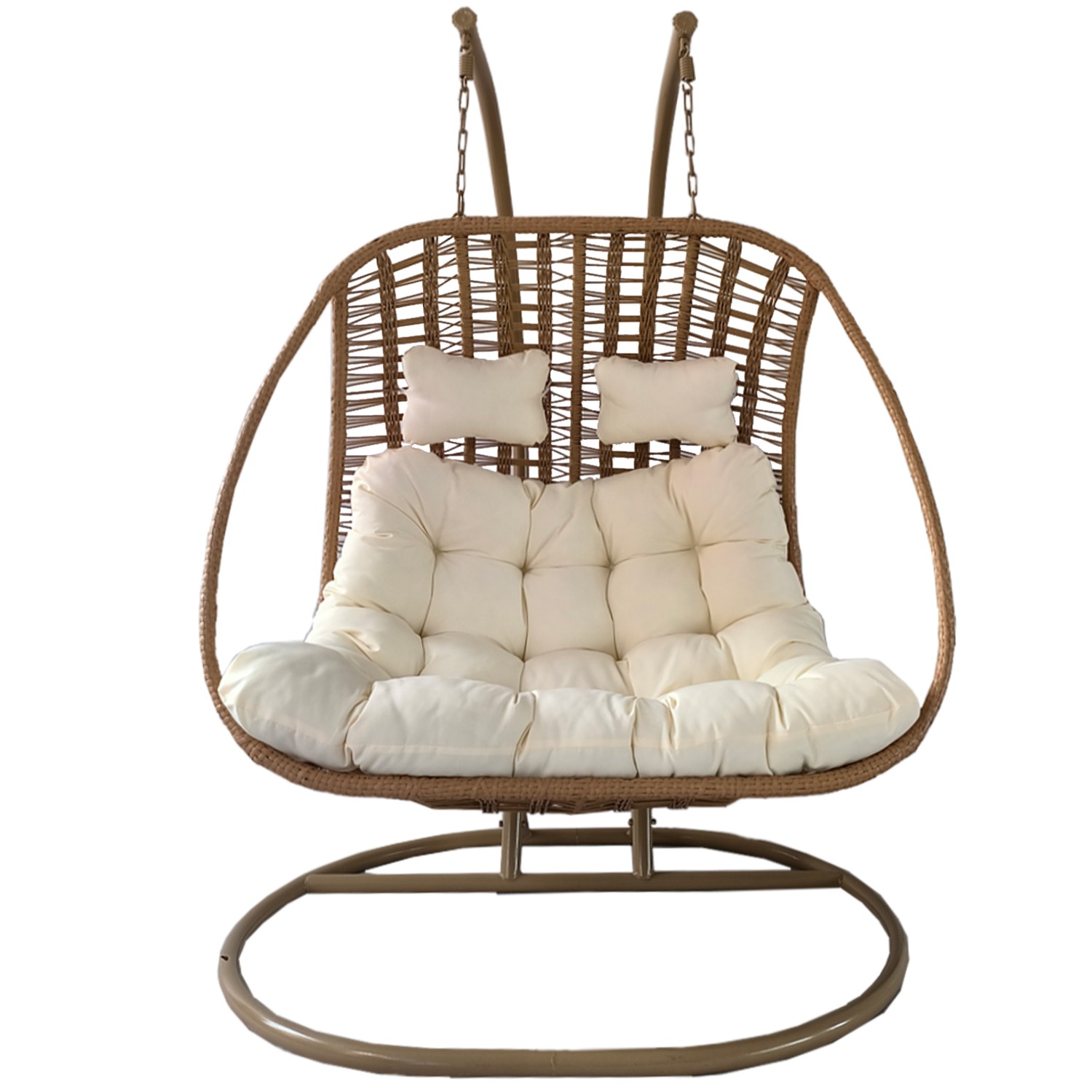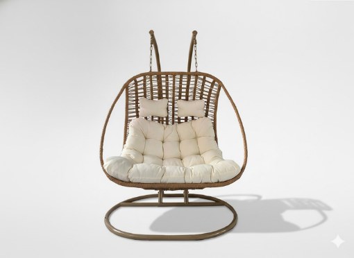ПІДВІСНИЙ КРІСЛО SURI ДВОМІСНЕ – НАТУРАЛЬНЕ, КРЕМОВА ПОДУШКА, НАТУРАЛЬНА РАМА 🌿