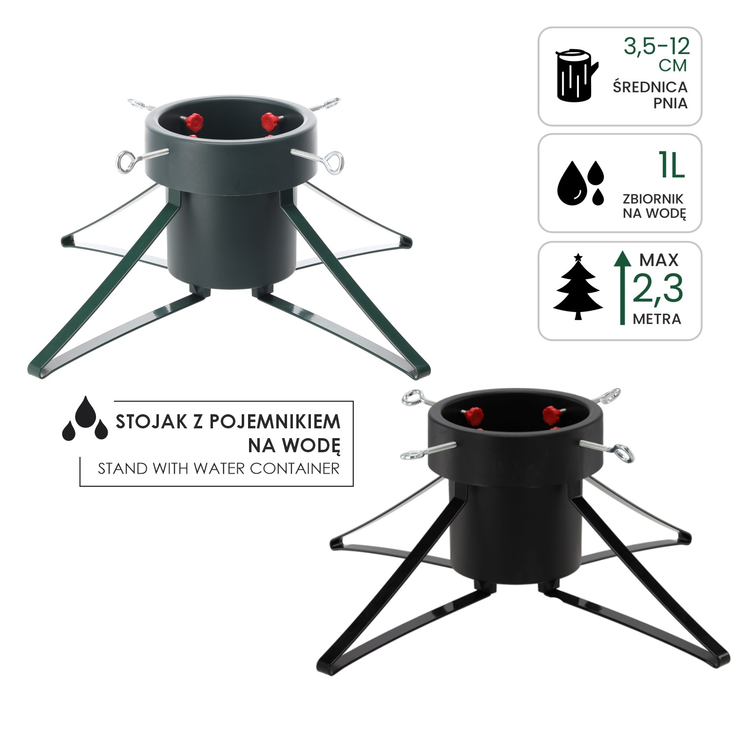 Цей функціональний і міцний підставку для ялинки забезпечує максимальну стабільність і безпечне кріплення ялинки висотою до 2,3 м. Практичний резервуар для води забезпечує довшу свіжість дерева, а міцна металева конструкція в поєднанні з міцним пластиком гарантує тривалий термін експлуатації. Завдяки інтуїтивно зрозумілому монтажу установка ялинки відбувається швидко і без проблем.Розміри виробу: 54 × 54 × 19 см Максимальна висота ялинки: 2,3 мЄмність резервуара для води: 2,0 лДіаметр стовбура: 50–120 ммМатеріал: метал + пластикКолір: зелений, чорний