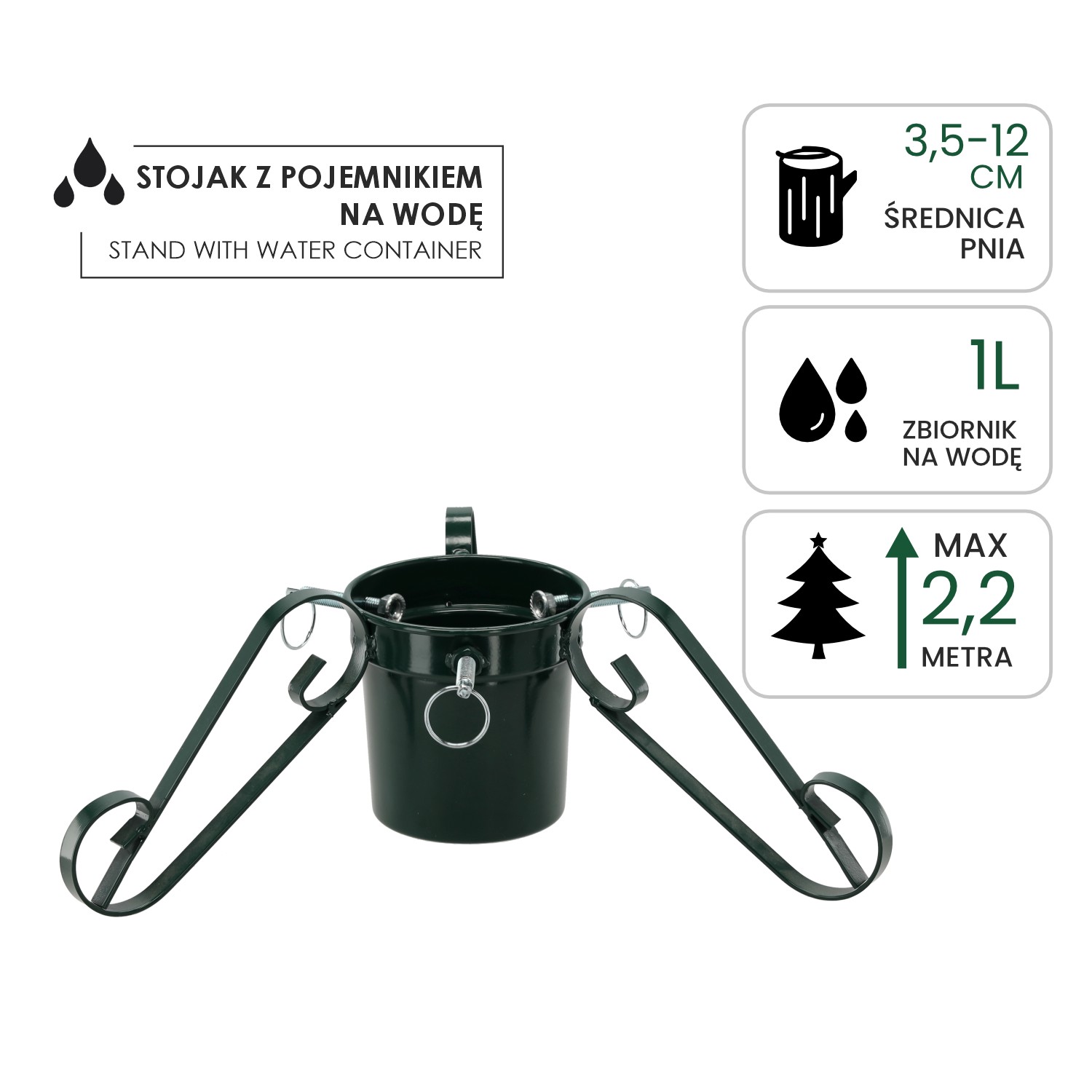 ТРАДИЦІЙНИЙ МЕТАЛЕВИЙ СТІЙКА ДЛЯ ЯЛИНКИ 3,5–12 СМ | ДЛЯ ЯЛИНОК ДО 2,2 М | РЕЗЕРВУАР ДЛЯ ВОДИ 1 Л